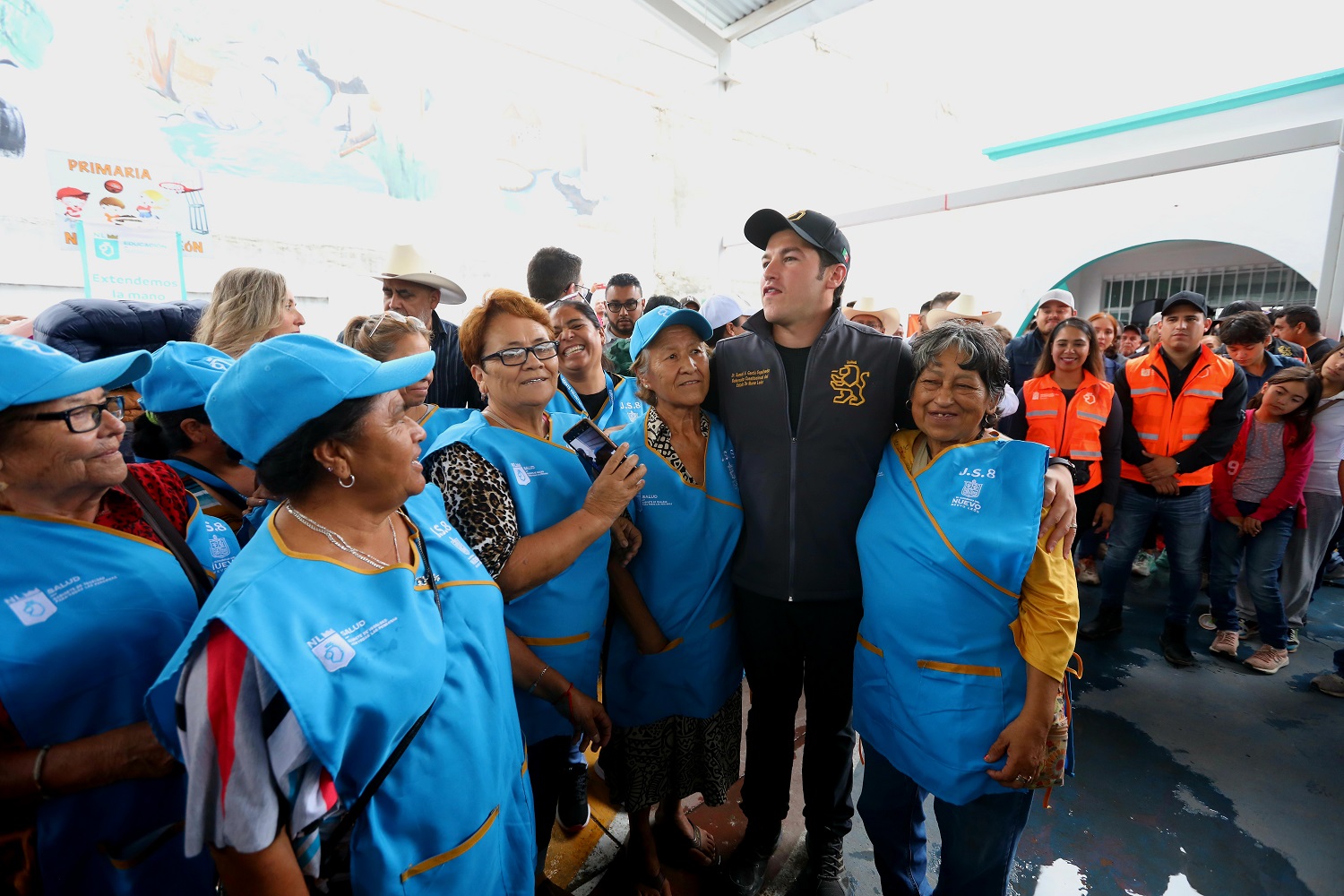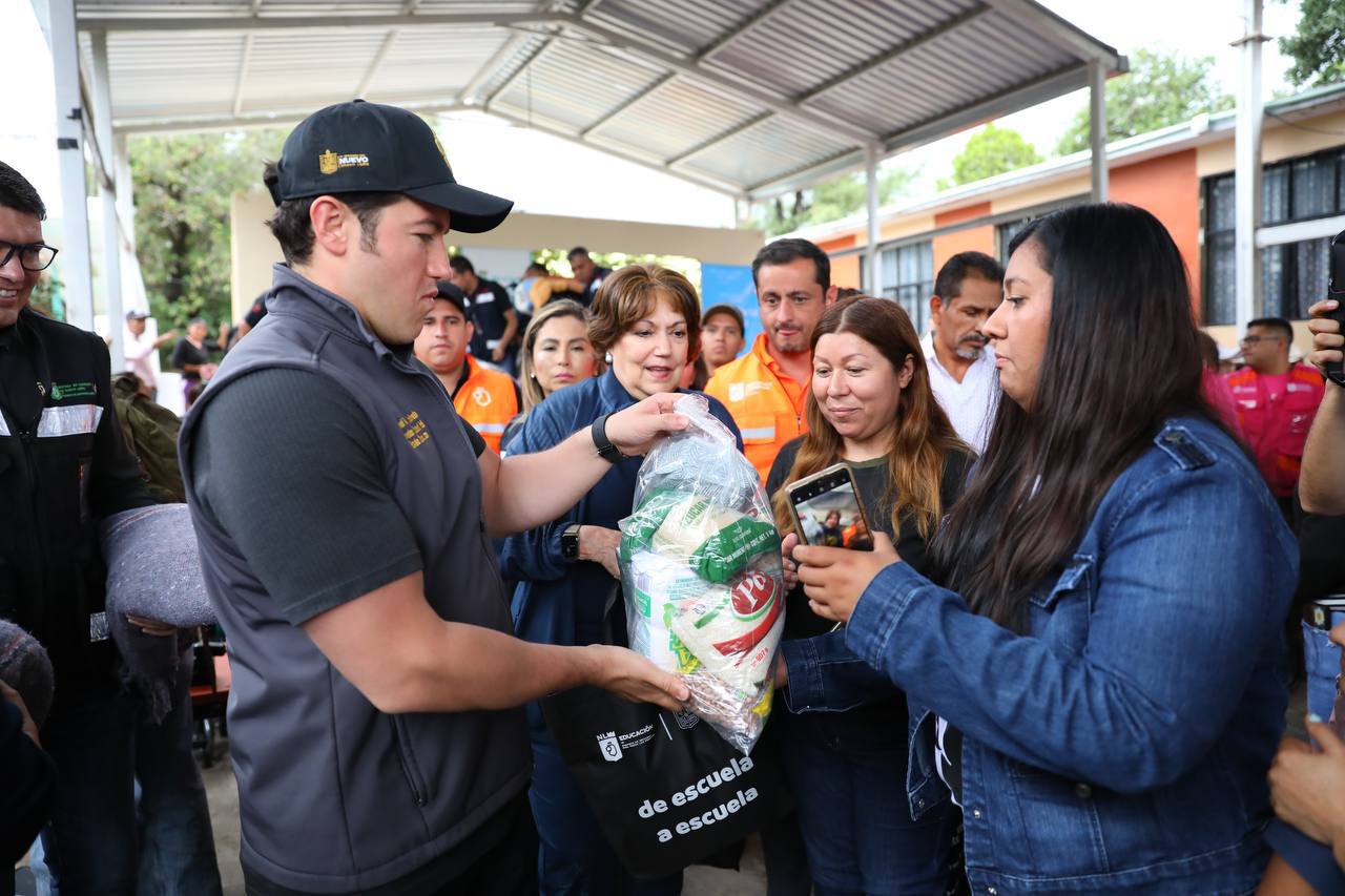 Por la tarde en el municipio de Galeana, el Mandatario estatal refrendó el compromiso de su Gobierno con las familias que resultaron afectadas tras las y visitó la Escuela Primaria "Nuevo León", donde entregó despensas, kits de higiene y diversos insumos.