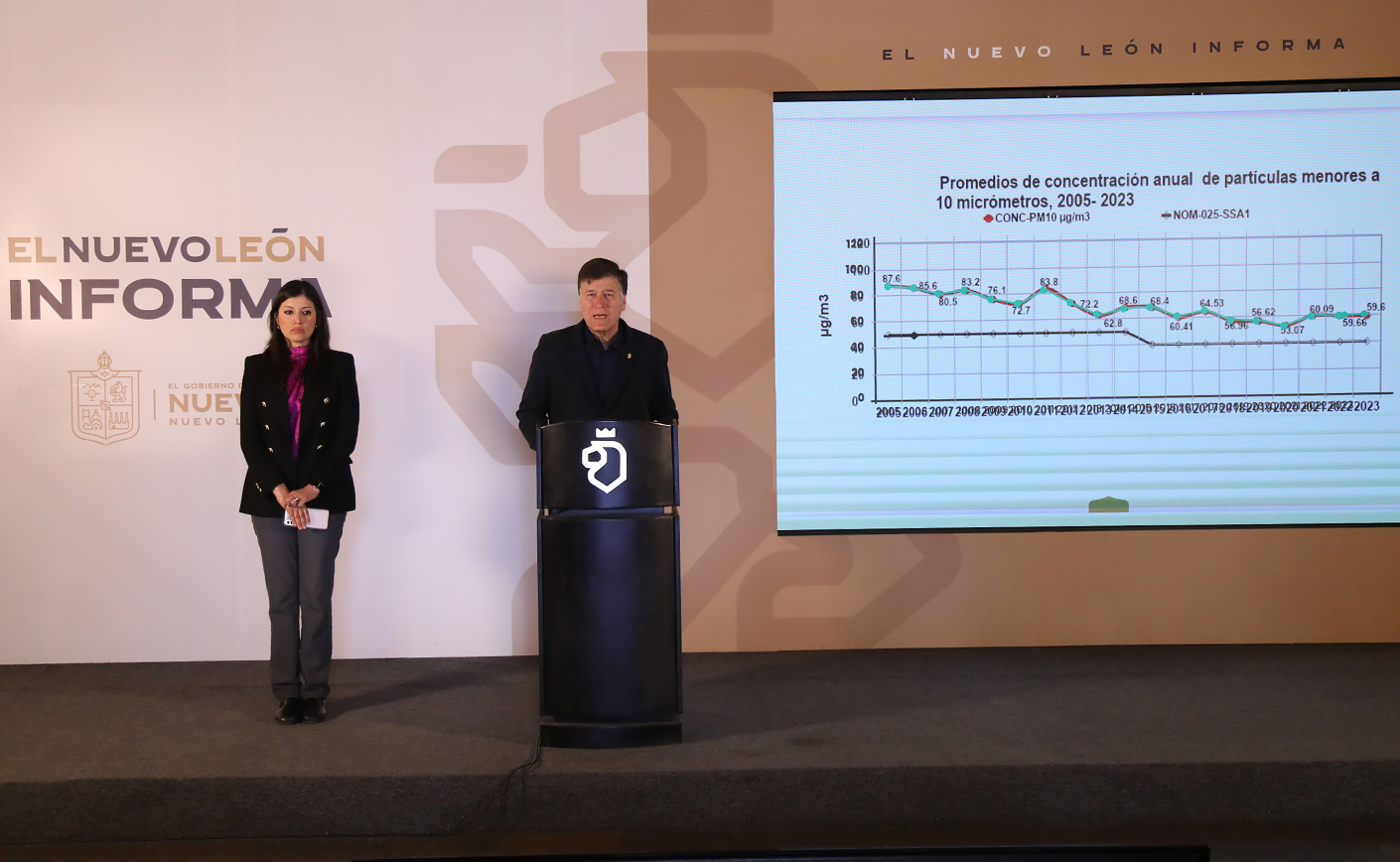 El titular de Medio Ambiente presentó las gráficas del impacto de las emisiones de la refinería de Cadereyta en la zona metropolitana y cómo estas impactan directamente a los municipios de Juárez, Escobedo y Monterrey.
