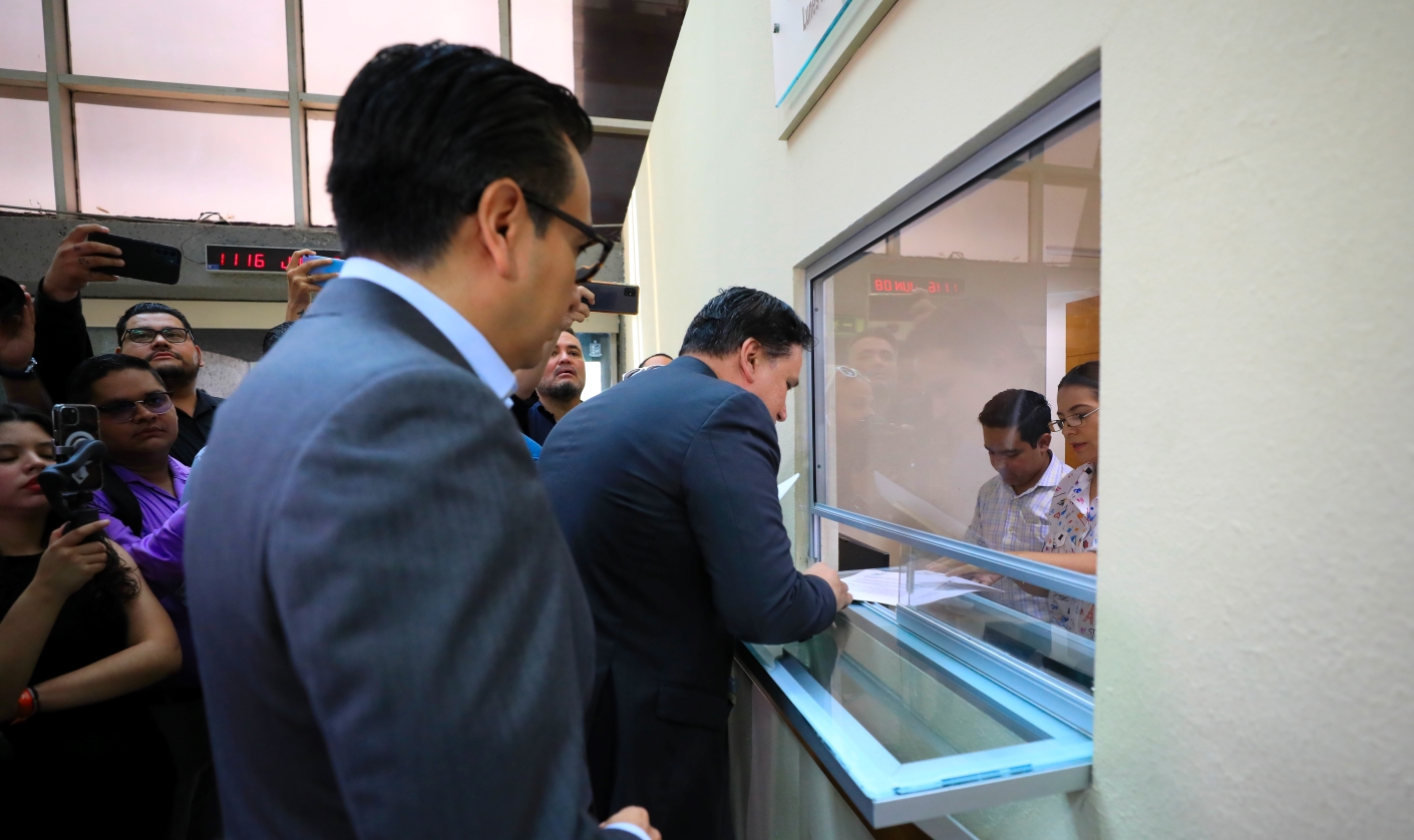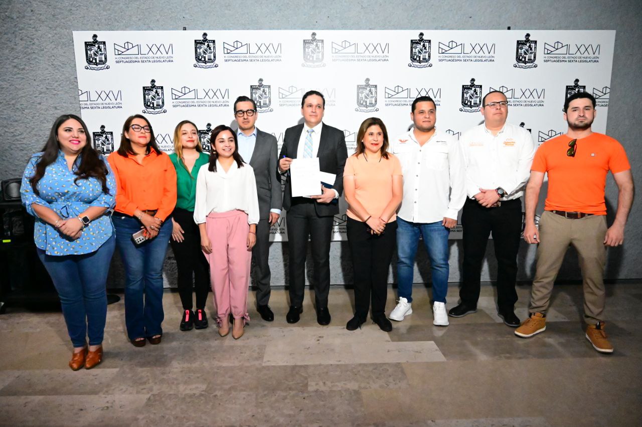 A nombre del Gobernador Samuel Alejandro García Sepúlveda, el Consejero Jurídico del Gobierno del Estado, Ulises Carlin de la Fuente entregó el escrito en el recinto legislativo acompañado de los diputados de la fracción parlamentaria de Movimiento Ciudadano (MC).