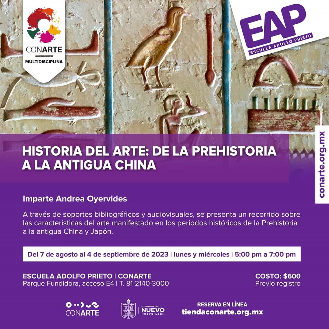 La “Historia del Arte: De la Prehistoria a la Antigua China” será el primer módulo del Seminario de Historia del Arte que se abordará en la Escuela Adolfo Prieto | CONARTE, con el objetivo de conocer los principales estilos y movimientos estéticos de la teoría del arte a lo largo de la historia; el Director de la EAP, Eliud Nava y la maestra Andrea Oyervides, serán los encargados de impartir el seminario que arranca el lunes 7 de agosto.