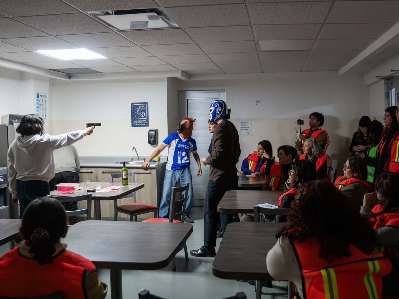 Los recorridos llegaron incluso a espacios como el comedor del personal que labora en el Teatro de la Ciudad, en donde se representó “Todo va, todo vuelve y la memoria sigue”, con la dirección de Daniel Gutiérrez.