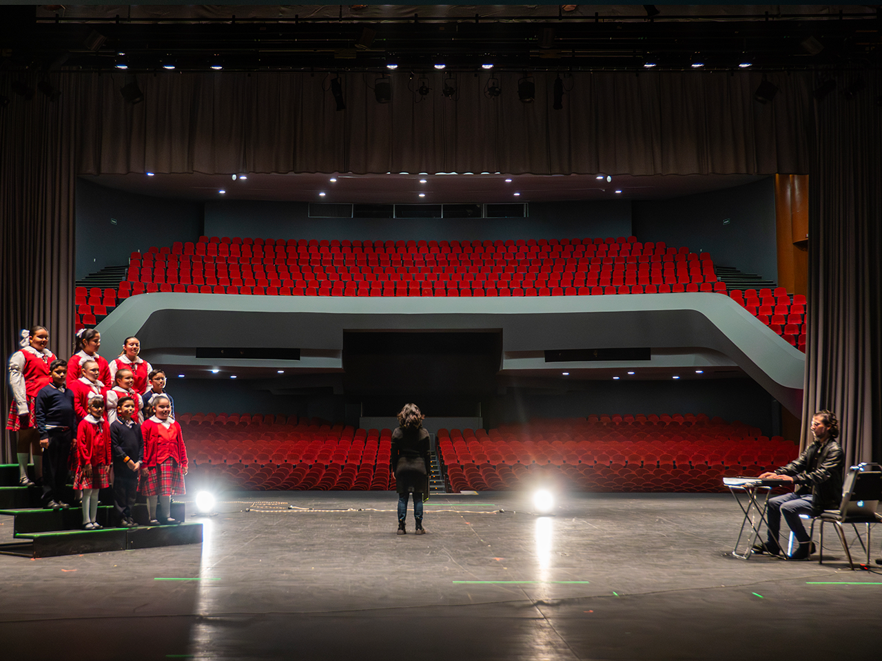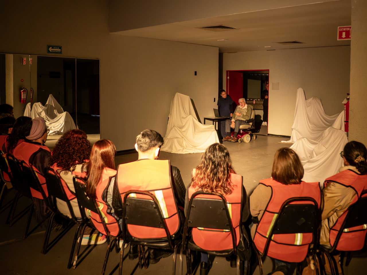 Los asistentes conocieron espacios como el foso de la orquesta, en el que se presentó “Loco cosmonauta del teatro”, bajo la dirección de Leticia Parra, un encuentro con el espectador sobre la memoria que guarda el teatro.