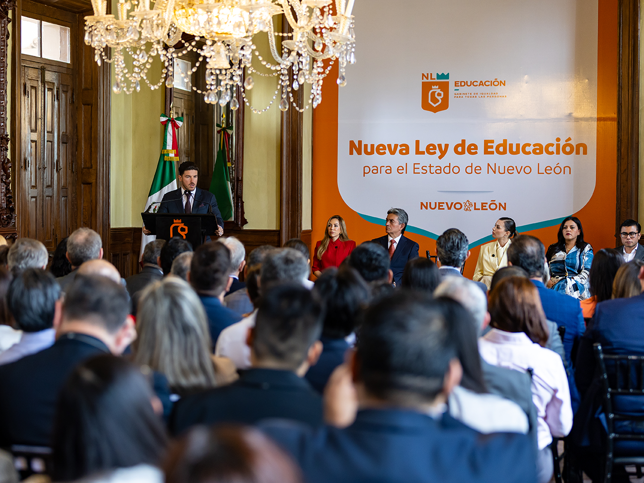 - “Esta nueva Ley de Educación es sin duda referente nacional. no existe ningún otro Estado que vaya a tener la normativa que hoy publica Nuevo León”, dijo el Gobernador.