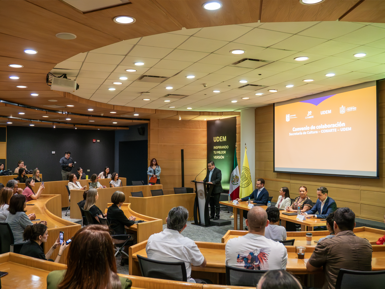 “En este sentido, la colaboración entre la UDEM, la Secretaría de Cultura y CONARTE responde a la necesidad de trabajar de manera conjunta para desarrollar proyectos y programas que fortalezcan los espacios donde la comunidad y los estudiantes puedan construir sus identidades, explorar diversas manifestaciones artísticas y reconocer el legado cultural que nos une.