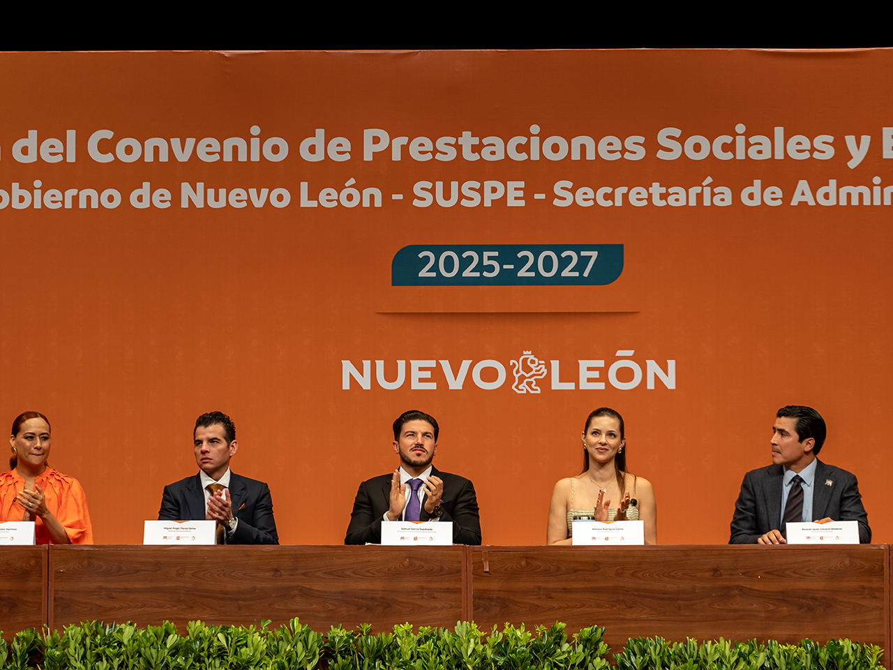 Tras la firma del convenio, el Gobernador de Nuevo León Samuel Alejandro García Sepúlveda, quien estuvo acompañado de la titular de Amar a Nuevo León, Mariana Rodríguez Cantú, señaló que en el Estado se premia el mérito y por ello reconoció el compromiso de las y los servidores públicos, destacando que este convenio reafirma la voluntad de su administración de garantizar un entorno laboral más justo, digno y equitativo.