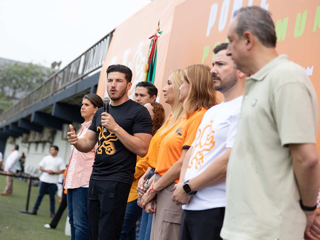 Monterrey, Nuevo León.- Tras poner en marcha el torneo relámpago de futbol Ponte Nuevo, Ponte Mundial en su edición 2025, el Gobernador del Estado, Samuel Alejandro García Sepúlveda hizo un llamado a las y los neoloneses de mostrar su mejor versión con miras al Mundial de Fútbol del próximo año, del cual Nuevo León será sede.