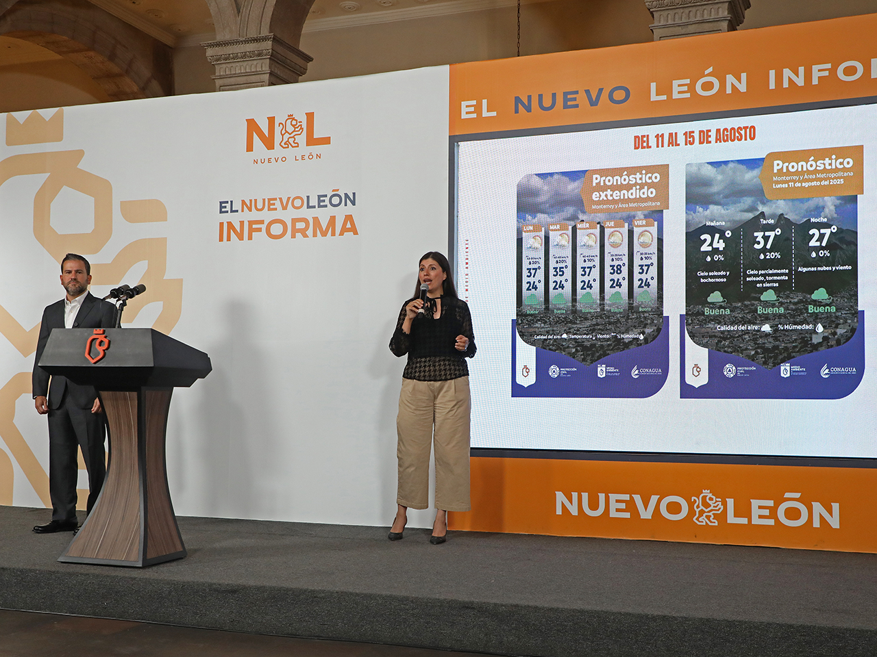 En el Nuevo León Informa el titular de la dependencia Raúl Lozano Caballero, quien estuvo acompañado por la directora de la Agencia para la Calidad del Aire, Armandina Valdez Cavazos, detalló los avances de las dependencias que conforman esta División como la Procuraduría Estatal de Medio Ambiente; Fuerza Civil; Simeprode; Instituto de Movilidad; Protección Civil; Parques y Vida Silvestre; Fideurb; Agua y Drenaje; Agencia de Calidad del Aire; y Agencia Estatal de Energía Renovable.