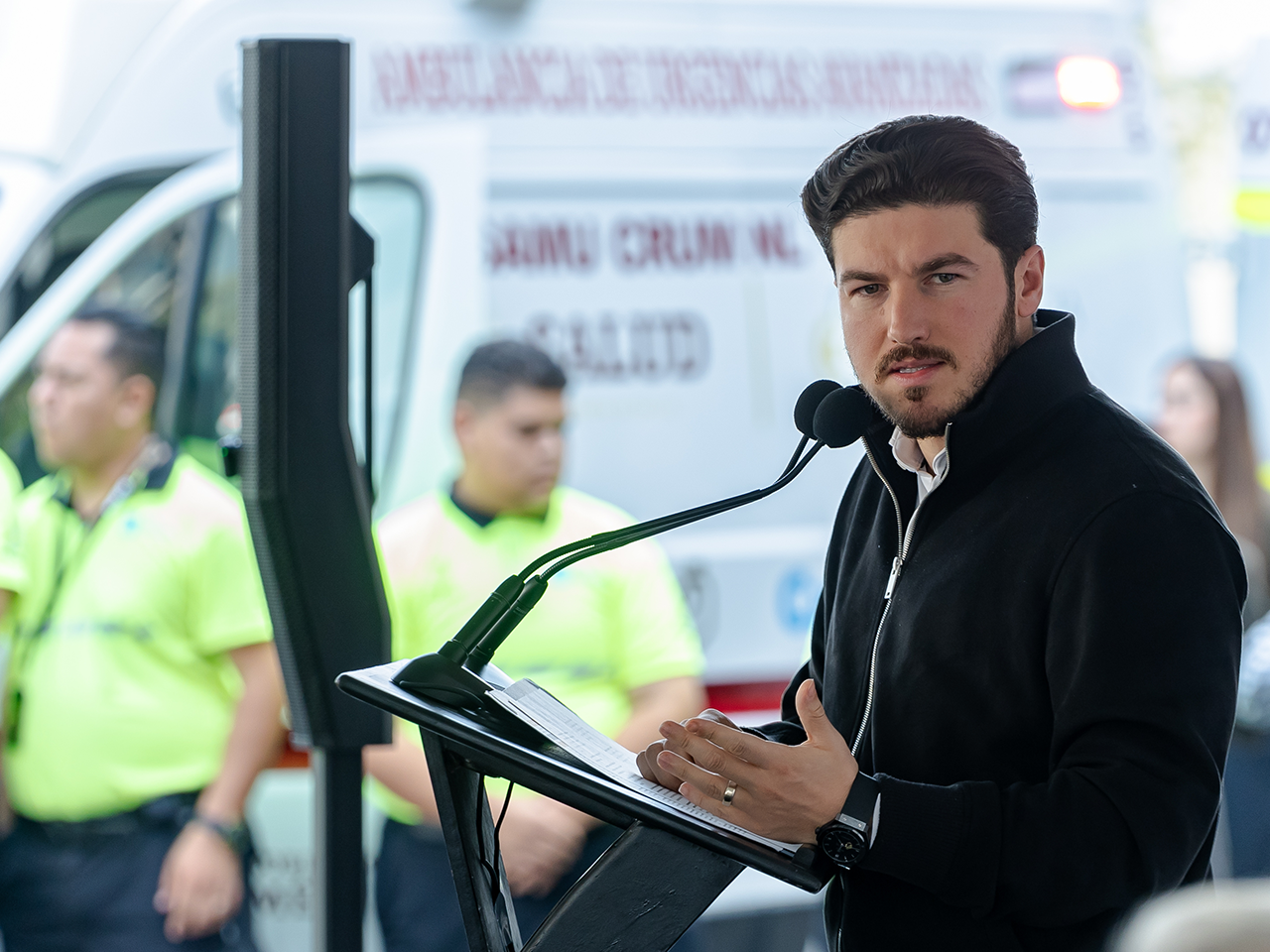 Monterrey, Nuevo León.- Como ejemplo del fortalecimiento de la atención prehospitalaria, el Gobierno de Nuevo León, a cargo del Gobernador Samuel Alejandro García Sepúlveda, puso en marcha la operación de 30 ambulancias que se integran al Centro Regulador de Urgencias Médicas (CRUM NL).