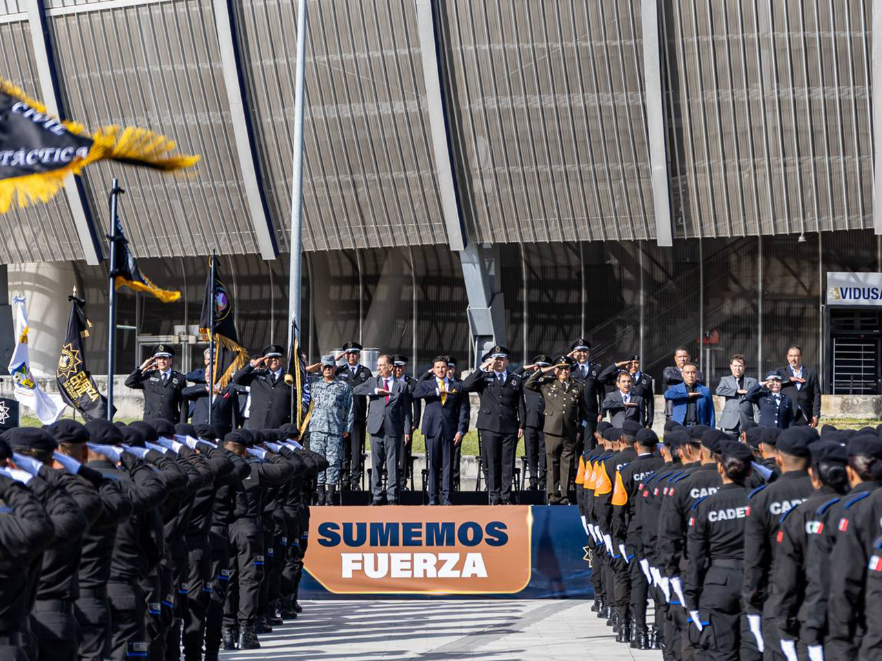 Agregó que con la graduación de los nuevos elementos, el Gobierno suma 6 mil oficiales estatales con los que está cerca de completar la meta del sexenio de 7 mil policías más capacitados y mejores pagados, que junto con la División Aérea de 10 helicópteros, 90 Black Mambas, los 16 nuevos destacamentos y el nuevo Cuartel General garantizarán la paz y salvaguarda de la ciudadanía para el Mundial 2026.