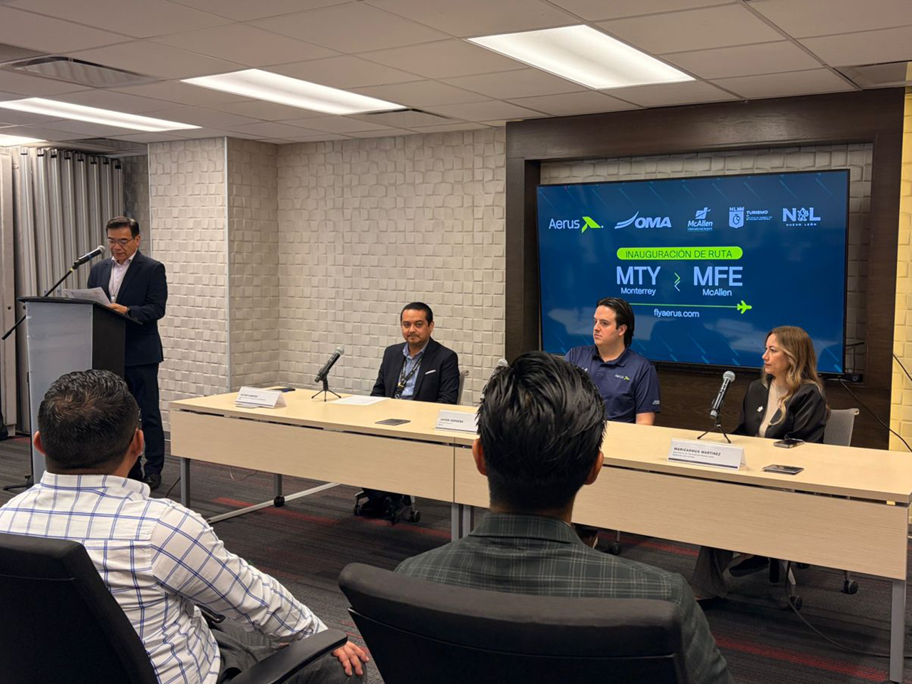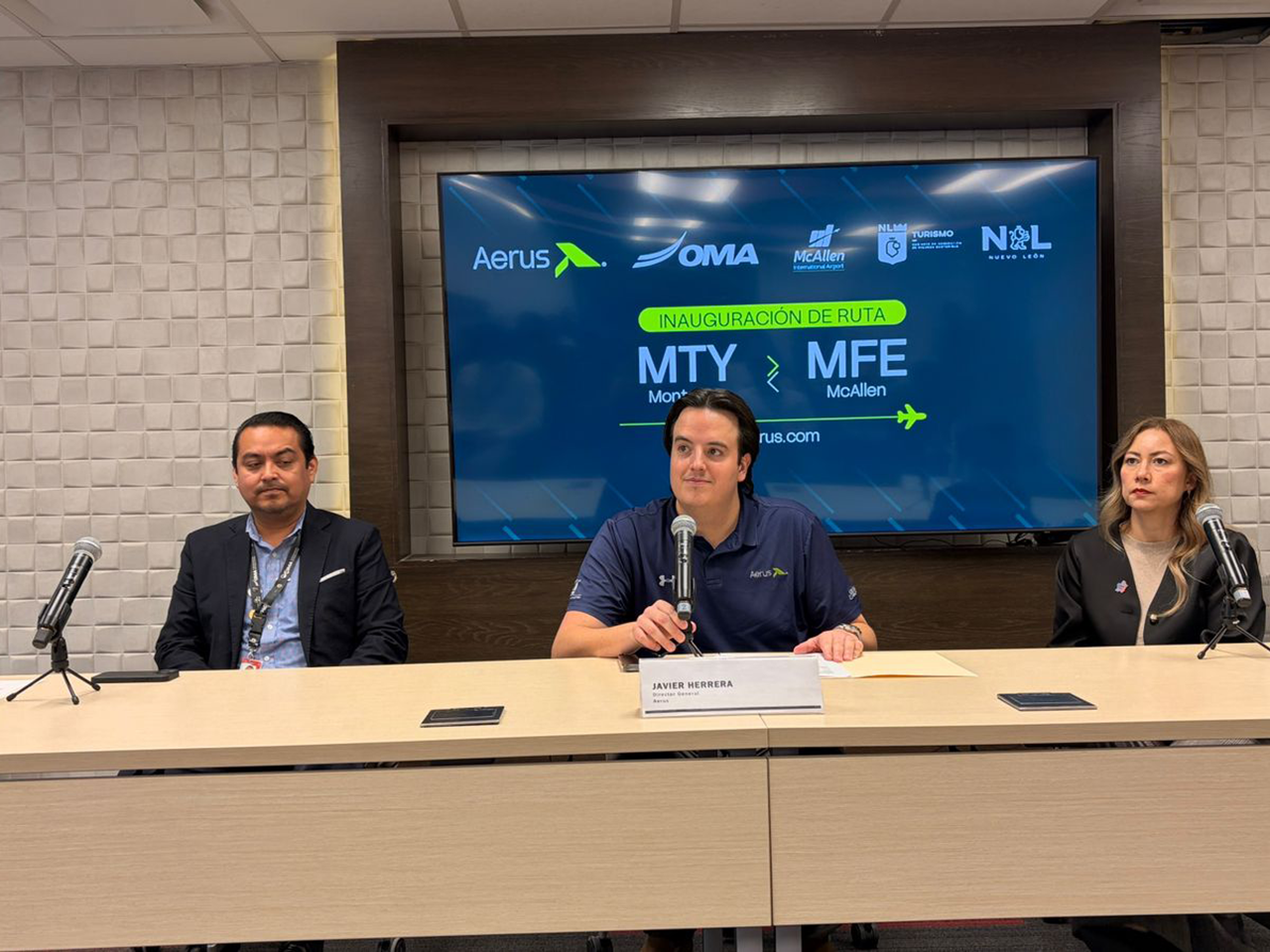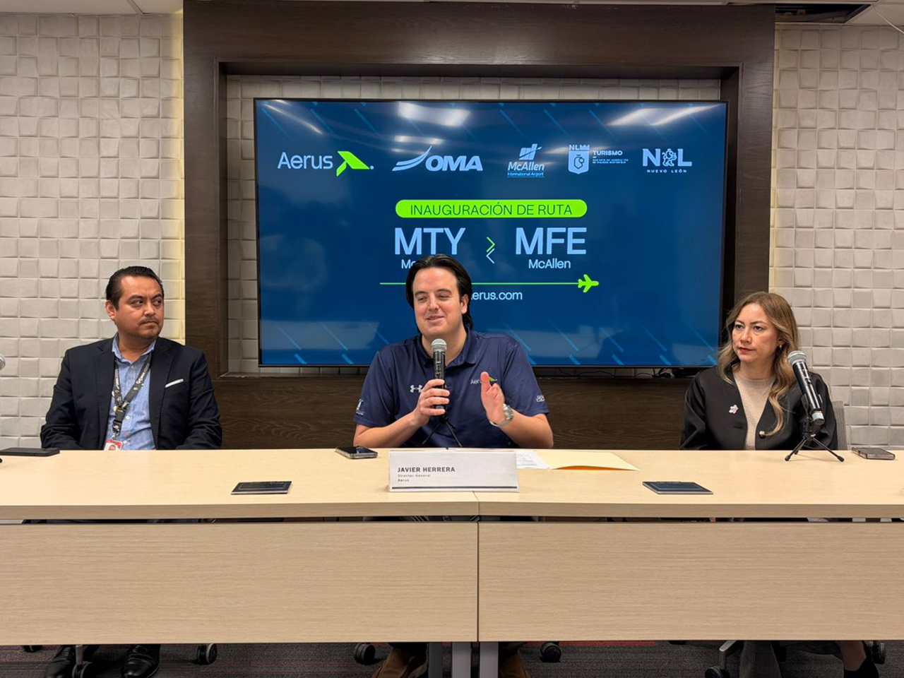 Monterrey, Nuevo León.- El Gobierno del Estado, a través de la Secretaría de Turismo de Nuevo León, refuerza la conectividad aérea de la entidad con el anuncio de la nueva ruta internacional Monterrey–McAllen (MTY–MFE) de la aerolínea regional AERUS, que comenzará operaciones el 27 de marzo de 2026 con vuelos diarios desde el Aeropuerto Internacional de Monterrey.