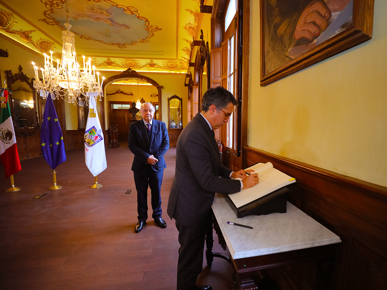 Monterrey, Nuevo León.- Para refrendar las relaciones de Nuevo León y la Unión Europea, el Secretario General de Gobierno, Javier Navarro Velasco recibió en Palacio de Gobierno al embajador de la UE en México, Francisco André.
