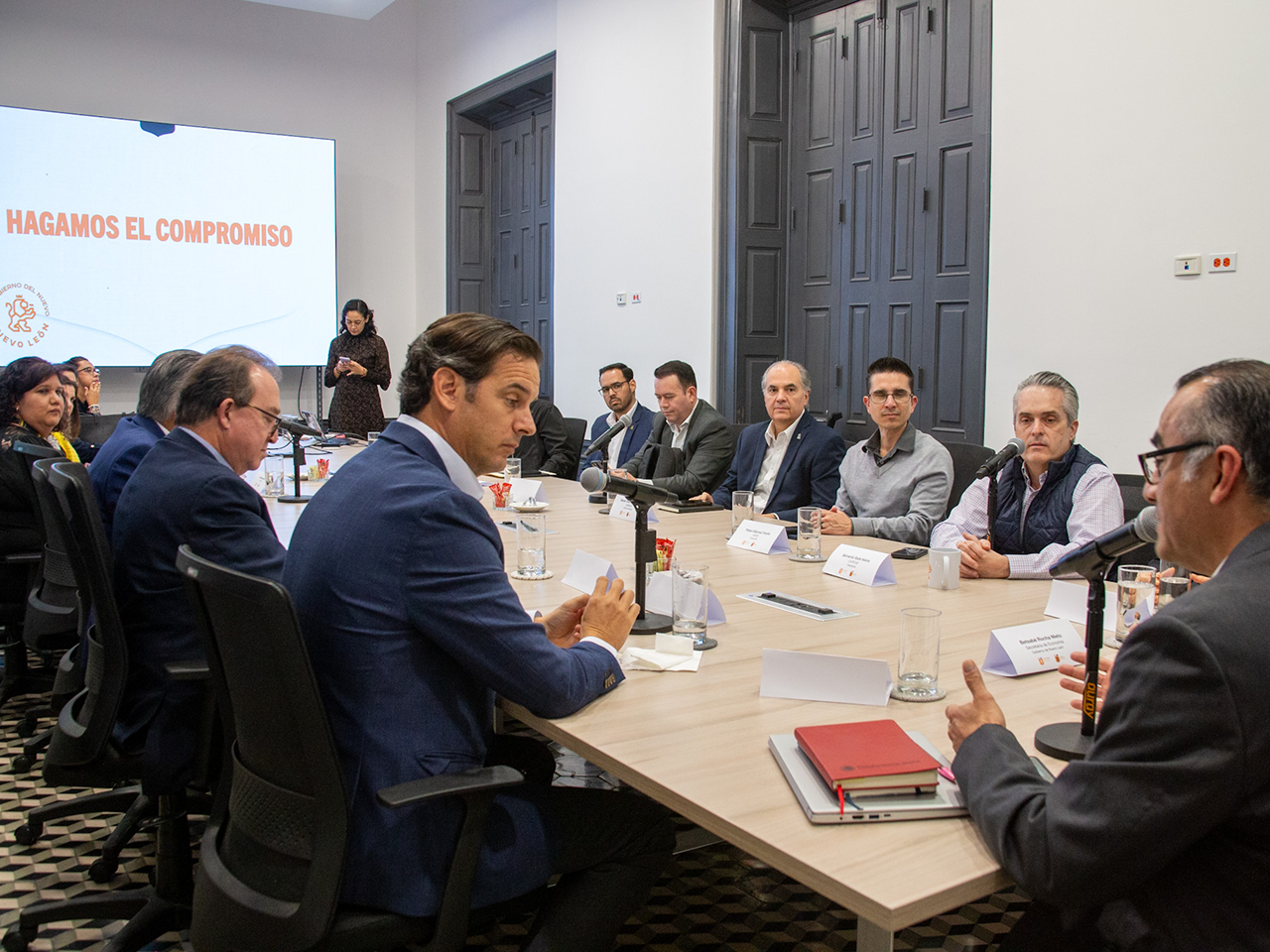 El encuentro fue encabezado por la Secretaria de Economía, Betsabé Rocha; la titular de la Oficina Ejecutiva, Mariela Saldívar; el Director General de la Comisión Estatal de Mejora Regulatoria, Julio Aguilar; y representantes de CAINTRA, CANACO, CANADEVI, CAPROBI, COPARMEX, INDEX y el Consejo Nuevo León.