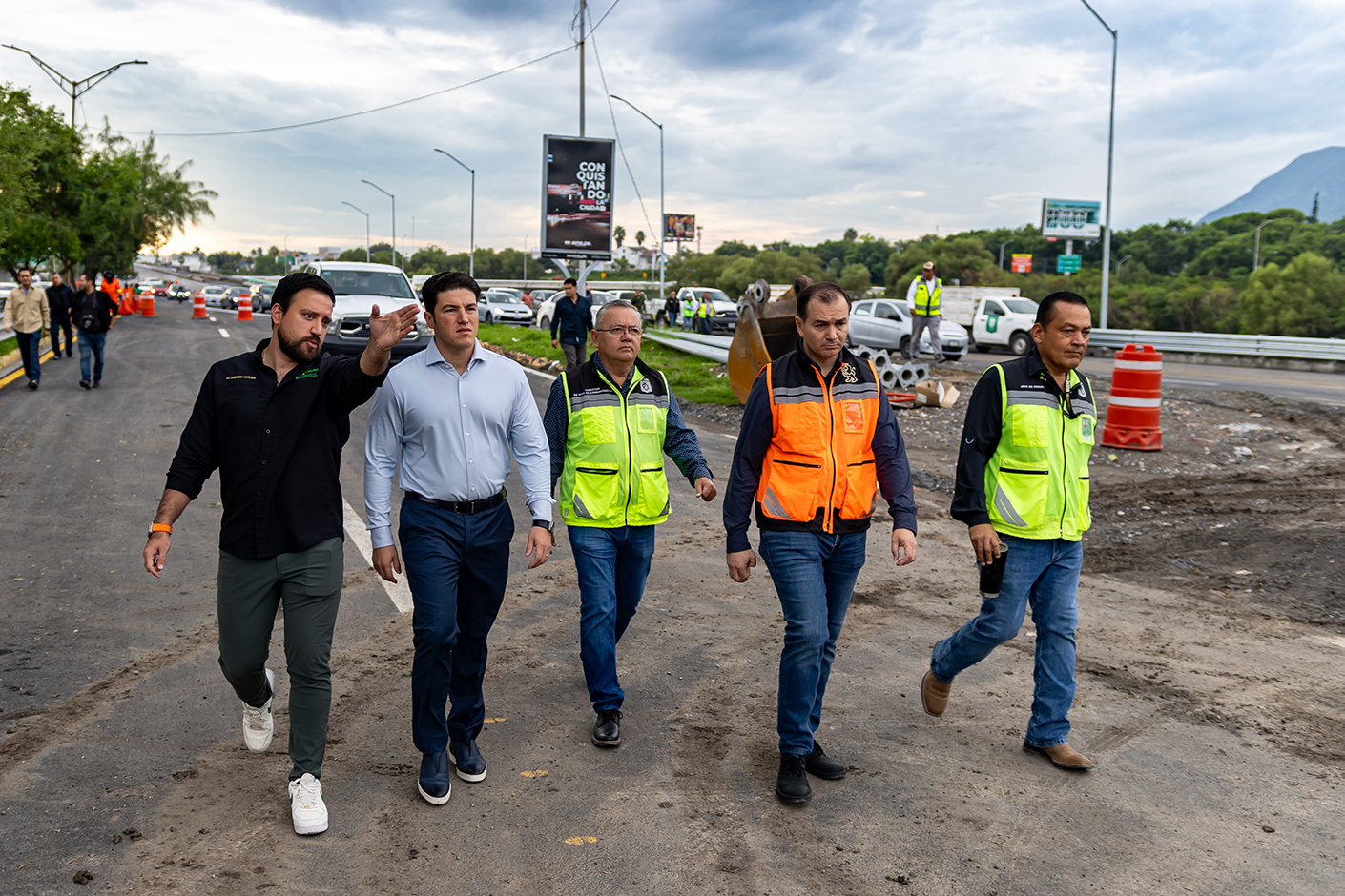Acompañaron al Gobernador Samuel García el Subsecretario de Infraestructura de la SMPU, José Francisco Ibargüengoytia; el director General del Fideicomiso de Desarrollo Urbano (FIDEURB), Mauricio Moncada Santoyo; y Jefes de Obra de la Constructora Hércules y Structor.