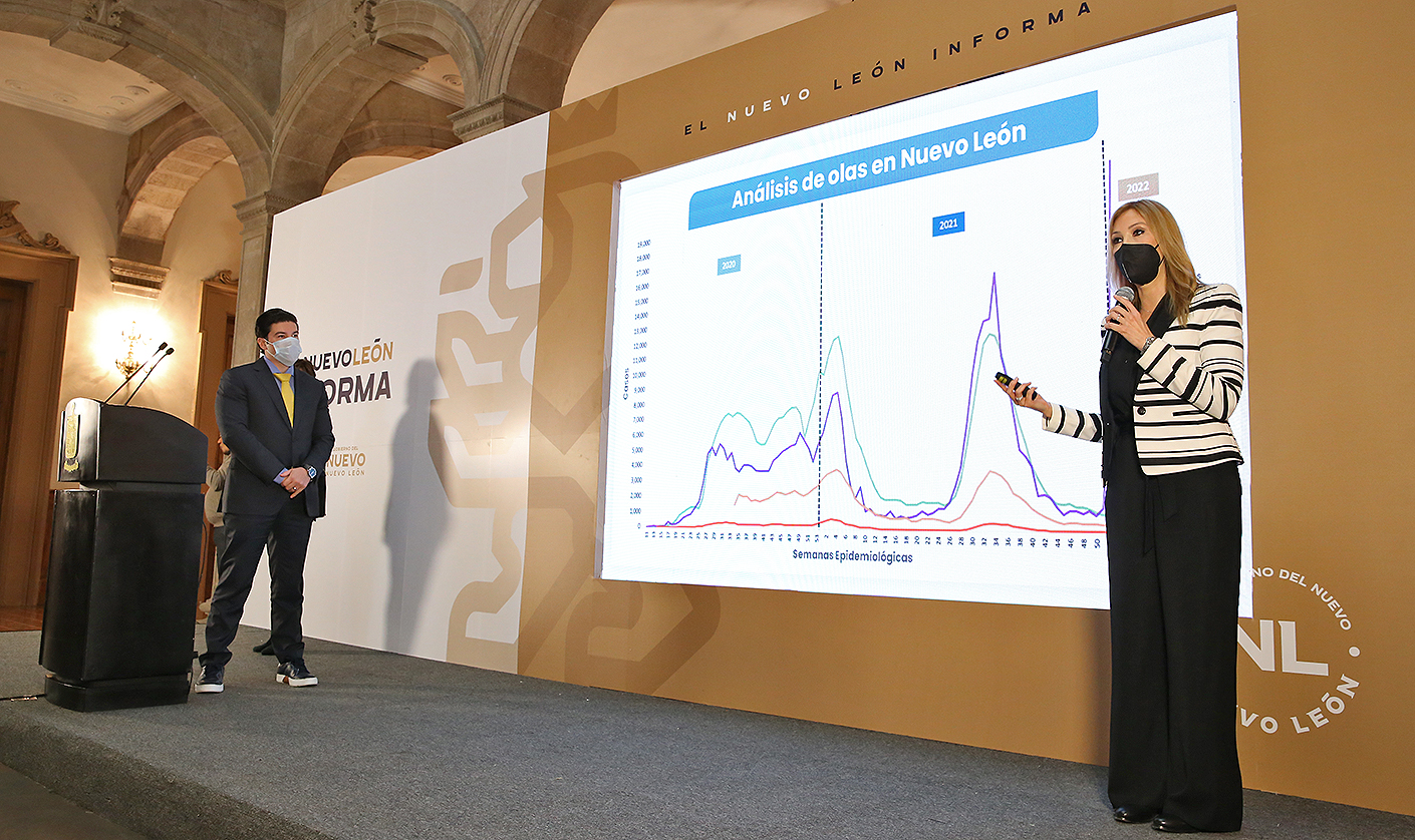 En el Nuevo León Informa se reportó que al 12 de enero se presentaron 5 mil 727 nuevos casos de COVID-19, 333 mil 665 en total; 6 nuevas defunciones, 15 mil 51 en total, y 419 personas hospitalizadas, de las que 64 utilizan ventilación mecánica.
