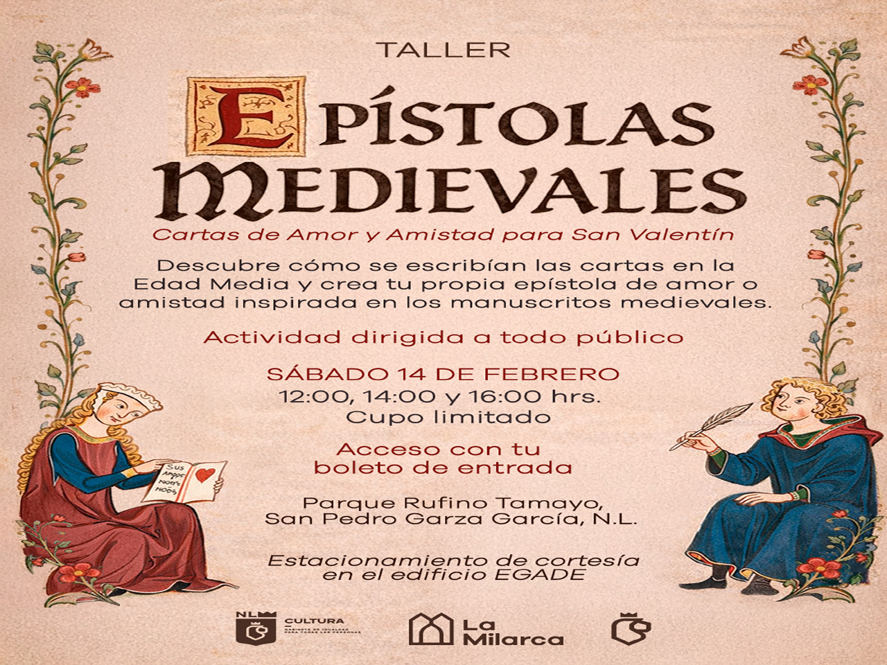 Monterrey, Nuevo León.- El Museo La Milarca invita al público al taller “Epístolas Medievales. Cartas de Amor y Amistad para San Valentín”, una actividad que muestra el valor de la escritura como medio esencial de comunicación durante el Medievo y que, al mismo tiempo, propone una experiencia lúdica para que las nuevas generaciones se diviertan dejando por escrito sus sentimientos y noticias, tal como se hacía siglos atrás.
