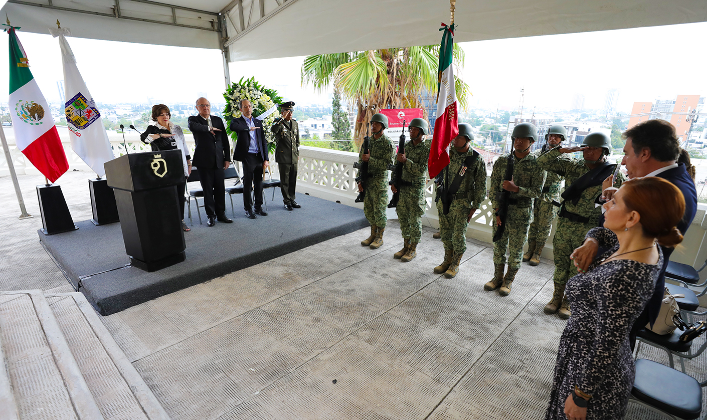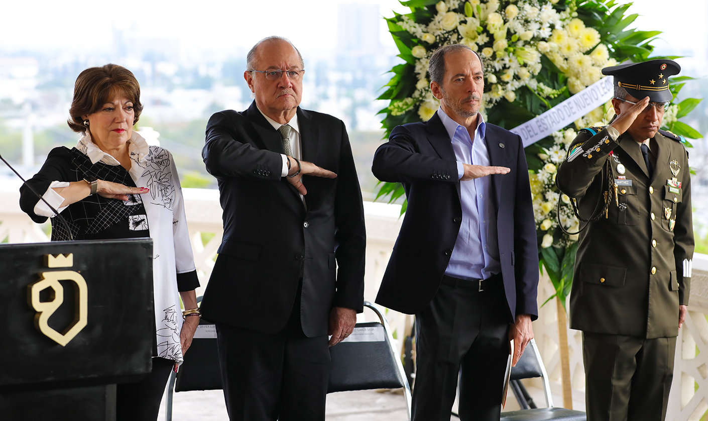 Tras rendir los honores a la bandera, se guardó un minuto de silencio en memoria de Eugenio Garza Sada, un empresario y filántropo mexicano que nació el 11 de enero de 1892 en la ciudad de Monterrey, Nuevo León. Sus padres fueron el empresario regiomontano Isaac Garza Garza, uno de los fundadores de Cervecería Cuauhtémoc, y la señora Consuelo Sada Muguerza.