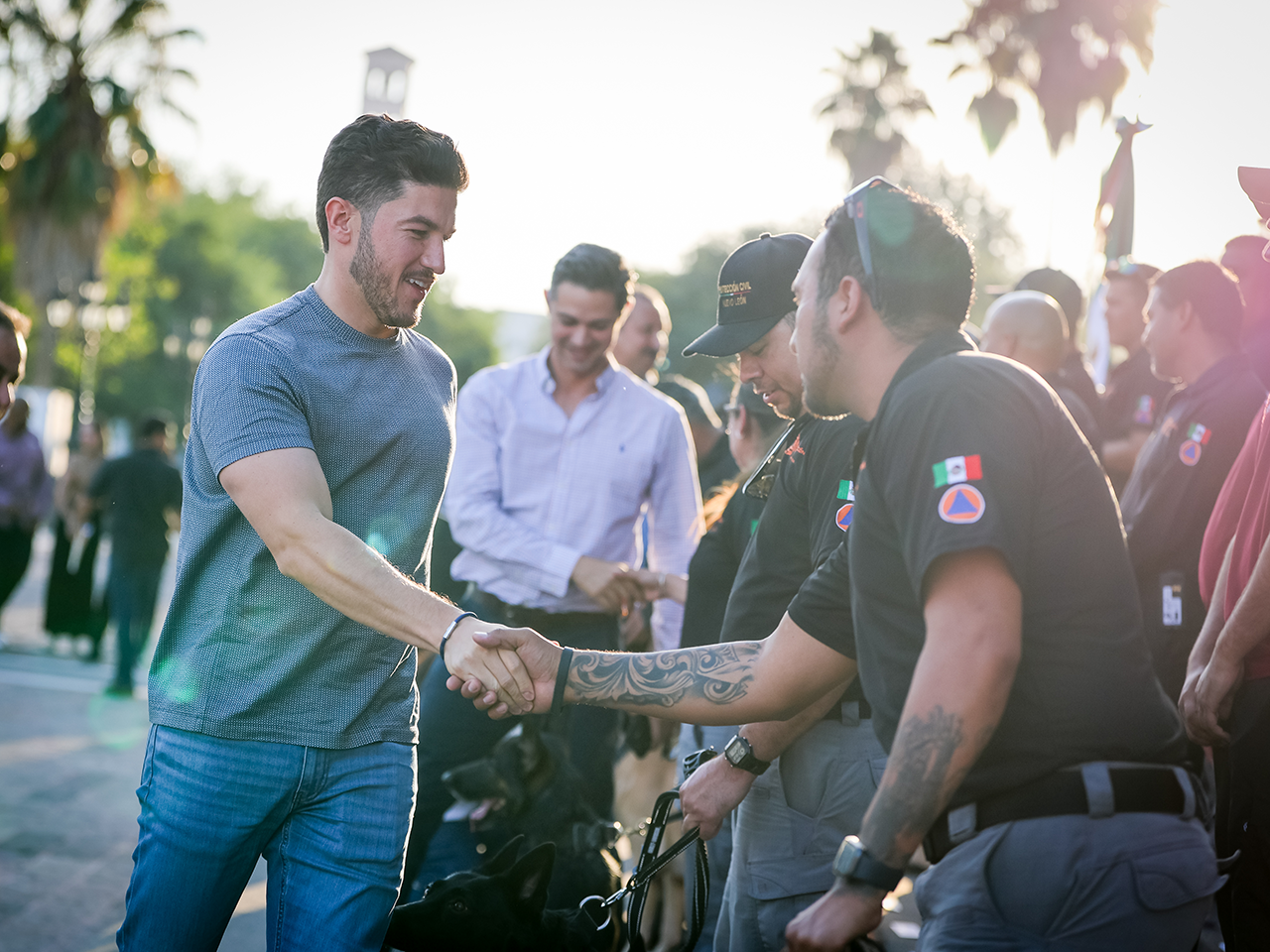 • Recibe Gobernador Samuel García a elementos de Protección Civil de NL que auxiliaron a personas afectadas por fuertes lluvias en esa zona texana.