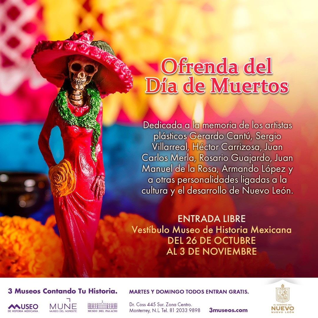En el vestíbulo del Museo de Historia Mexicana los visitantes podrán apreciar una ofrenda dedicada a los artistas plásticos de la comunidad que han fallecido en el 2020 y 2021, aunque también se mencionara a aquellas personas que han contribuido al desarrollo social, político y cultural de la comunidad como (directores de teatro, locutores, promotores e historiadores).