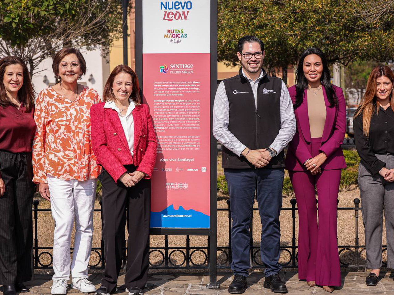 En la ceremonia estuvieron presentes el Presidente Municipal de Santiago, David de la Peña Marroquín, y representantes de la Secretaría de Turismo de Nuevo León, entre ellos María Guadalupe Guidi Kawas, Subsecretaria de Inteligencia Turística, y Alejandra Morales Mariscal, Directora General de CODETUR, además de actores clave del sector turístico y la sociedad civil.