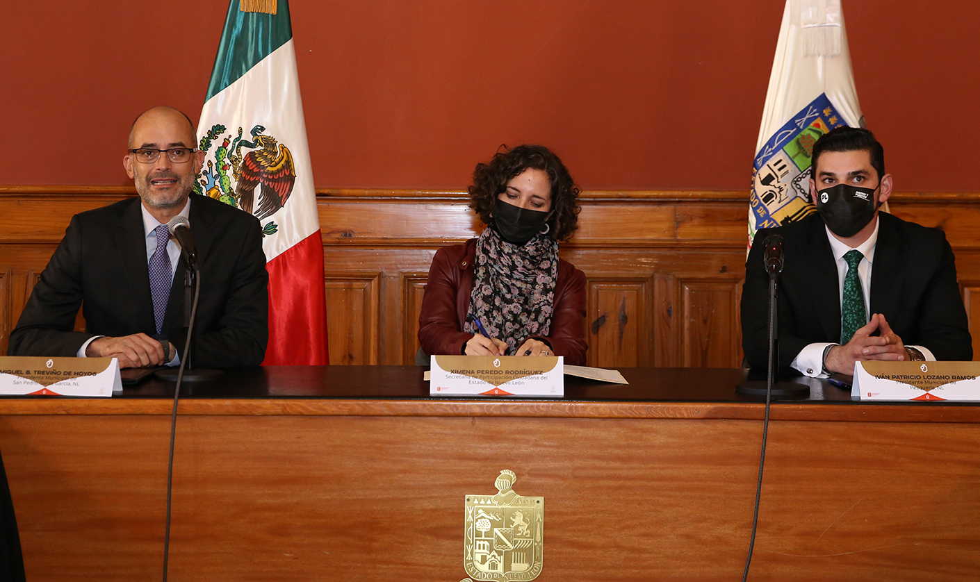 El Gobierno de Nuevo León, a través de la Secretaría de Participación Ciudadana, atestiguó este lunes la firma de un convenio de colaboración entre los municipios de Pesquería y San Pedro Garza García, mediante el cual este último se comprometió a compartir sus mejores prácticas en materia de apertura y colaboración con la ciudadanía.