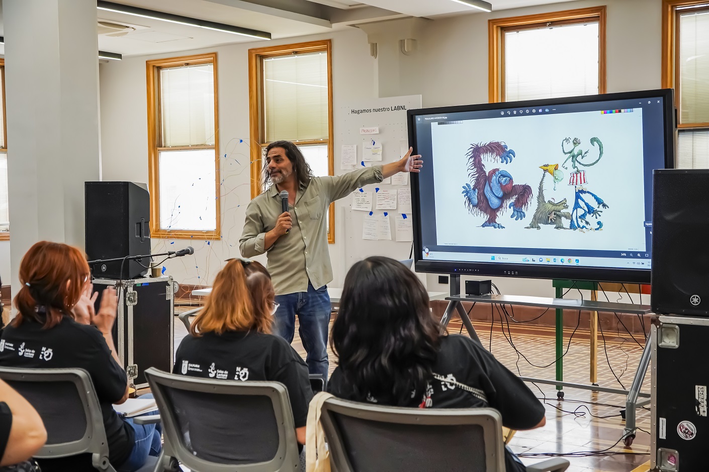 Mediante el taller “La ruta de los garabatos”, encabezado por el ilustrador Juan Gedovius, los participantes realizaron una exploración de la lúdica musical como método alternativo al fomento a la lectura, así como de algunas técnicas de creación literaria a través de imágenes.