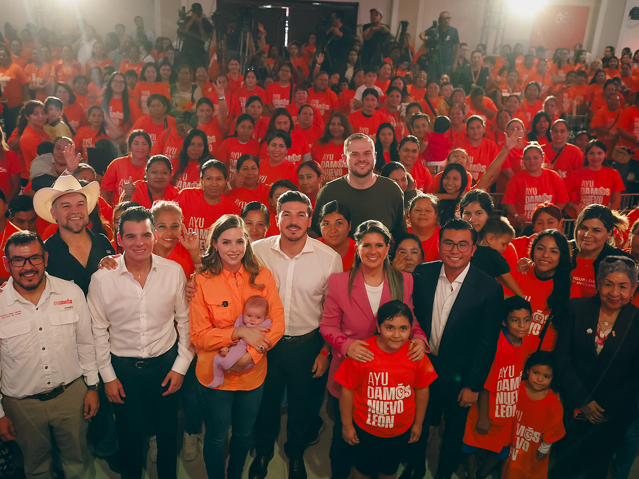 "Hoy Nuevo León va a tener nuevas Carreteras, nuevas líneas del Metro, nuevos camiones, nueva policía, nueva presa y encima, el programa social más importante en la historia de Nuevo León, que genera justicia, que genera equidad y que reconoce todo lo que ustedes hacen por su familia y por Nuevo León”.