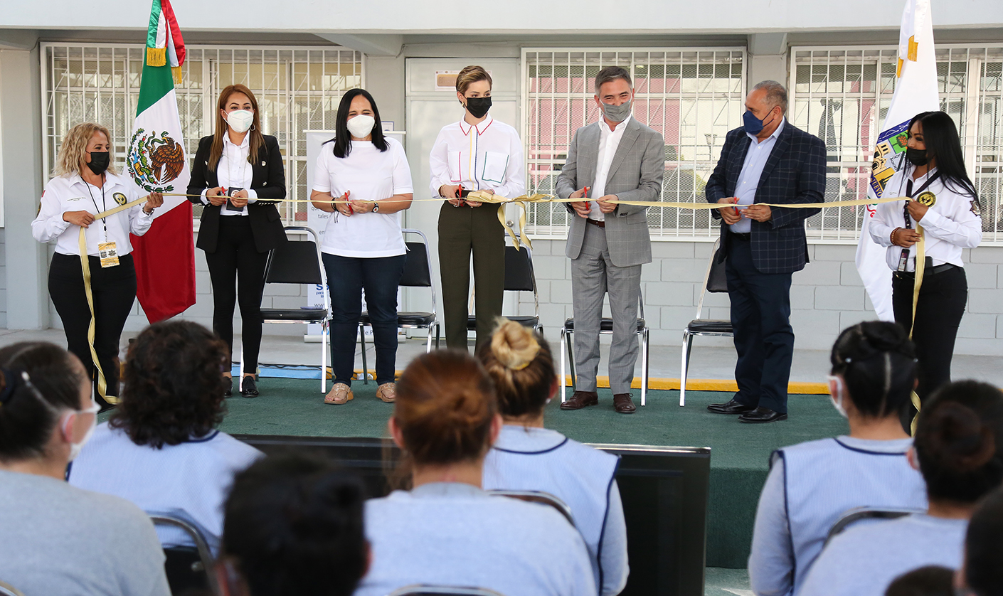 El corte del listón inaugural estuvo a cargo de la titular de la Oficina AMAR a Nuevo León, Mariana Rodríguez Cantú; el Secretario de Seguridad, Aldo Fasci Zuazua; la presidenta de Promoción de Paz A.C., Consuelo Bañuelos Lozano; la directora del Cereso Femenil,  Dulce Nayeli Alcaraz; y el titular de la Agencia de Administración Penitenciaria, Raúl Salvador Ferráez Arreola.