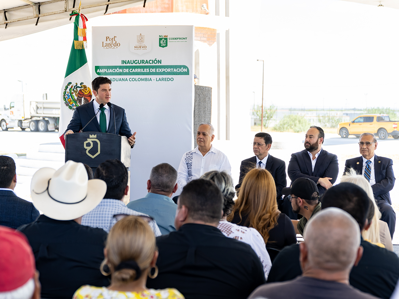 Anáhuac, Nuevo León.- El Gobernador Samuel García inauguró la Ampliación de los Carriles de Exportación de la Aduana Colombia - Laredo.