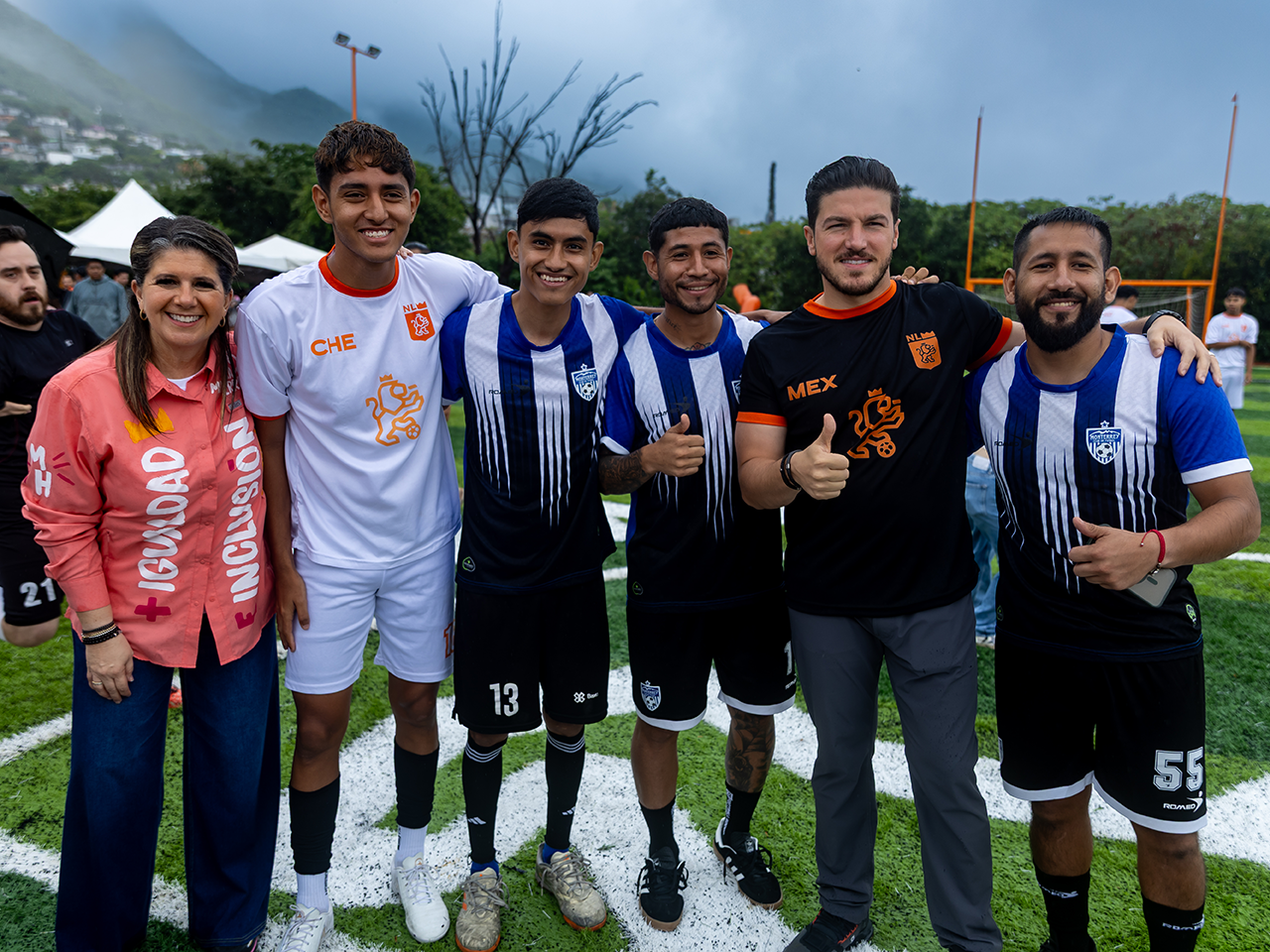 “Vamos a hacer nuevas escuelas, vamos a remodelar los que existen y aprovechando que está el material y la maquinaria, vamos a construir 300 canchas, ya van 65 y vamos por 300, el gobierno va a pagar los árbitros, vamos a hacer torneos mundialitos y todos a jugar fútbol, rayados, tigres y todos.