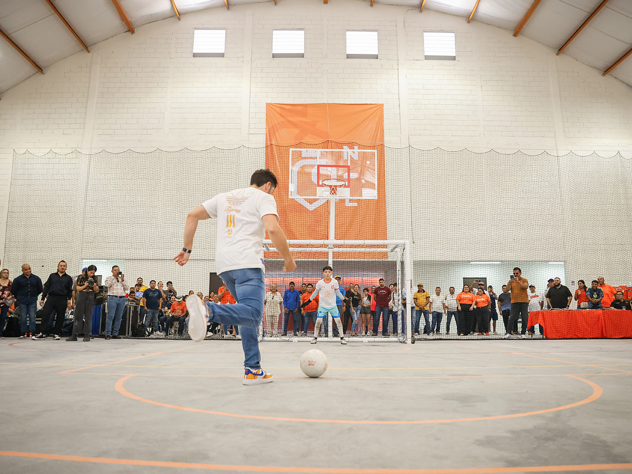 Inaugura Gobernador Multideportivo en Cerralvo con cascarita mundialista