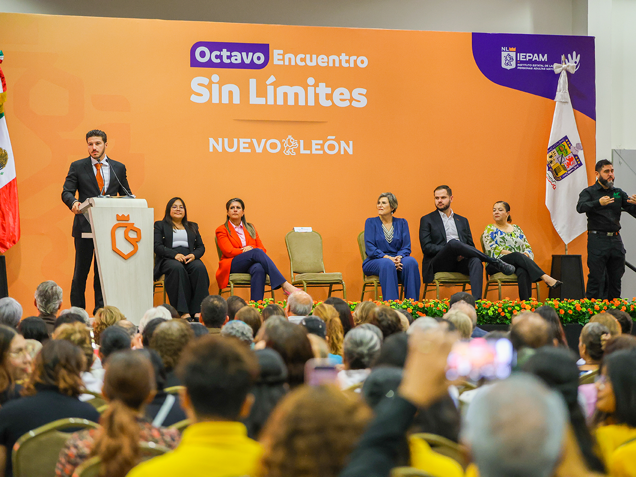 Monterrey, Nuevo León.- Tras dar arranque al Octavo Encuentro sin Límites “Re-evolucionando el envejecimiento”, el Gobernador de Nuevo León Samuel Alejandro García Sepúlveda destacó que desde la Nueva Constitución se reconoce el derecho a una vida digna de los adultos mayores y aseguró que esto ha sido posible gracias al trabajo de las diversas dependencias.