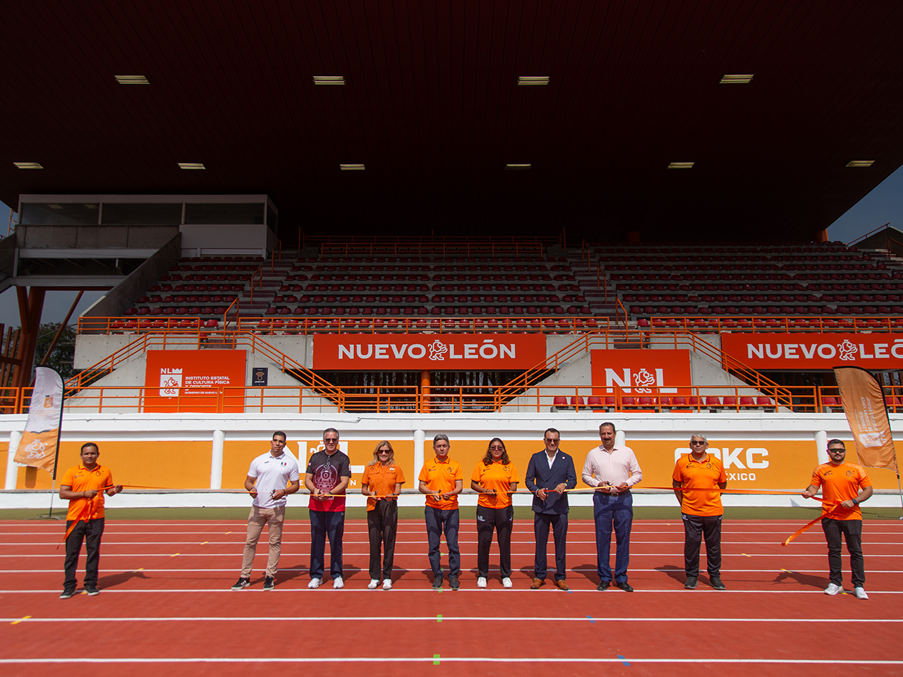 Monterrey, Nuevo León.- Para cumplir con la instrucción del Gobernador Samuel Alejandro García Sepúlveda de brindar una mejor atención a los deportistas, el Instituto Estatal de Cultura Física y Deporte (INDE), inauguró la nueva imagen de la Pista de Atletismo del Centro de Alto Rendimiento (CARE) en el Parque Niños Héroes.