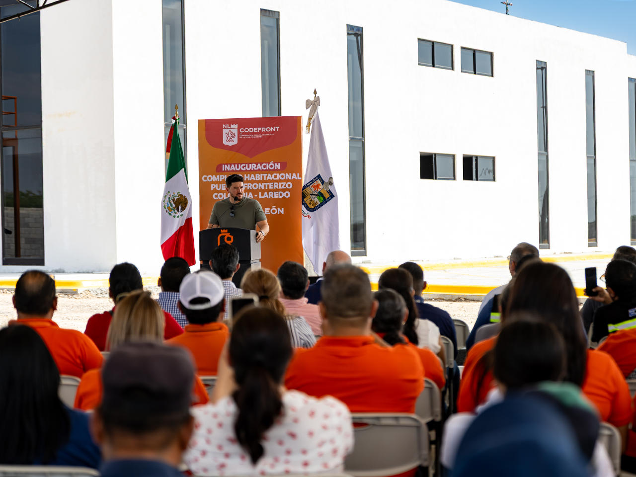 Anáhuac, Nuevo León.- A fin de convertirse en una aduana con una operación las 24 horas los 365 días del año, el Gobernador del Estado Samuel Alejandro García Sepúlveda inauguró este viernes el Complejo Habitacional del Puerto Fronterizo Colombia – Laredo.