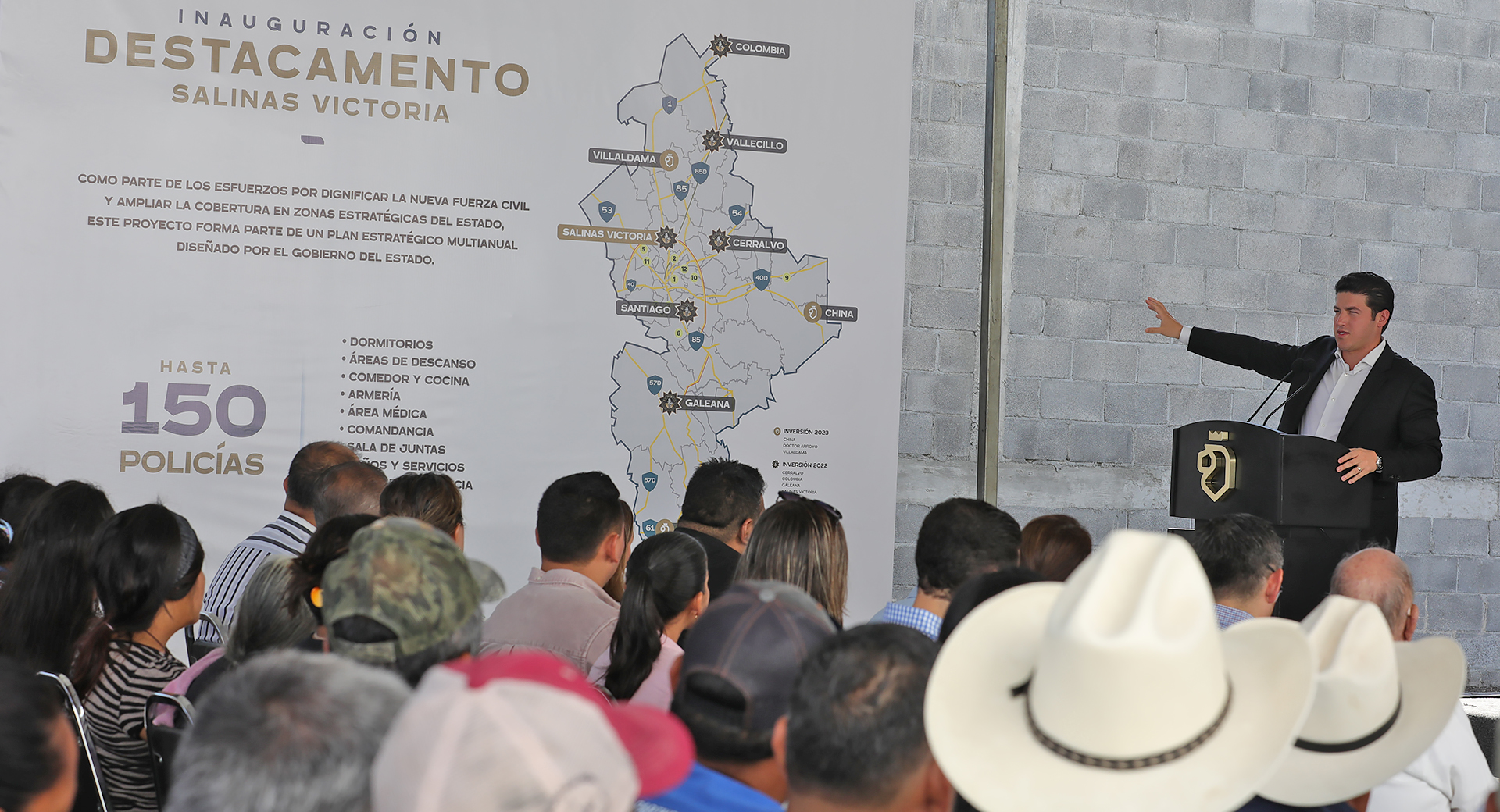 Salinas Victoria, Nuevo León.- En la inauguración del Destacamento de Fuerza Civil en el municipio de Salinas Victoria, el Gobernador Samuel Alejandro García Sepúlveda dijo que con 16 de estos cuarteles que blindarán las entradas y salidas de la entidad, Nuevo León tendrá la seguridad que siempre debió tener.