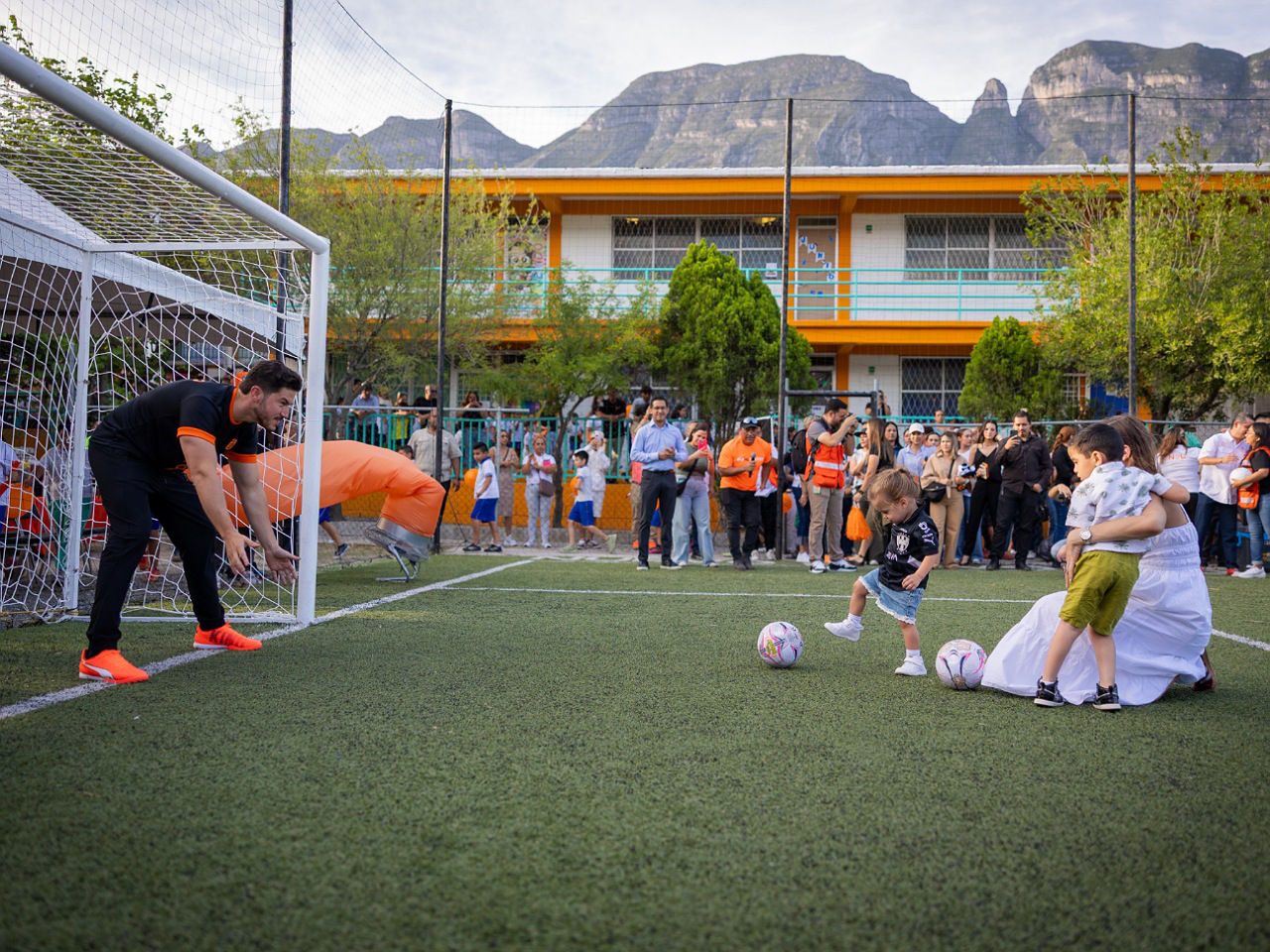 En la escuela "Mártires de Cananea", del municipio de Santa Catarina, los pequeños encabezados por Mariel y Emilio, acompañaron al Gobernador Samuel Alejandro García Sepúlveda y a su esposa Mariana Rodríguez Cantú, titular de AMAR a Nuevo León, a una jornada del Programa "Ponte Nuevo, Ponte Mundial".