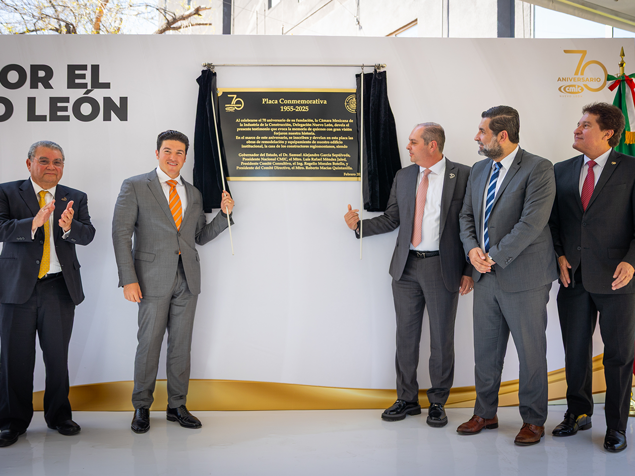 Durante el evento, el Gobernador develó una placa conmemorativa junto al Presidente de la CMIC Nacional, Luis Méndez Jaled; el Presidente del Comité Directivo de CMIC Nuevo León, Roberto Macías Quintanilla; y el Presidente del Comité Consultivo de CMIC Nuevo León, Rogelio Morales Botello.