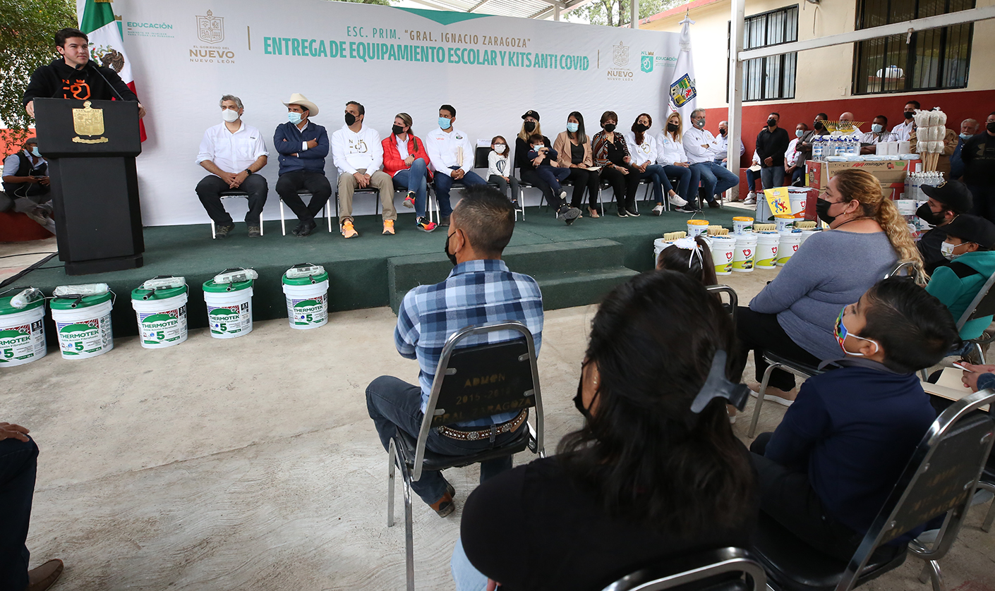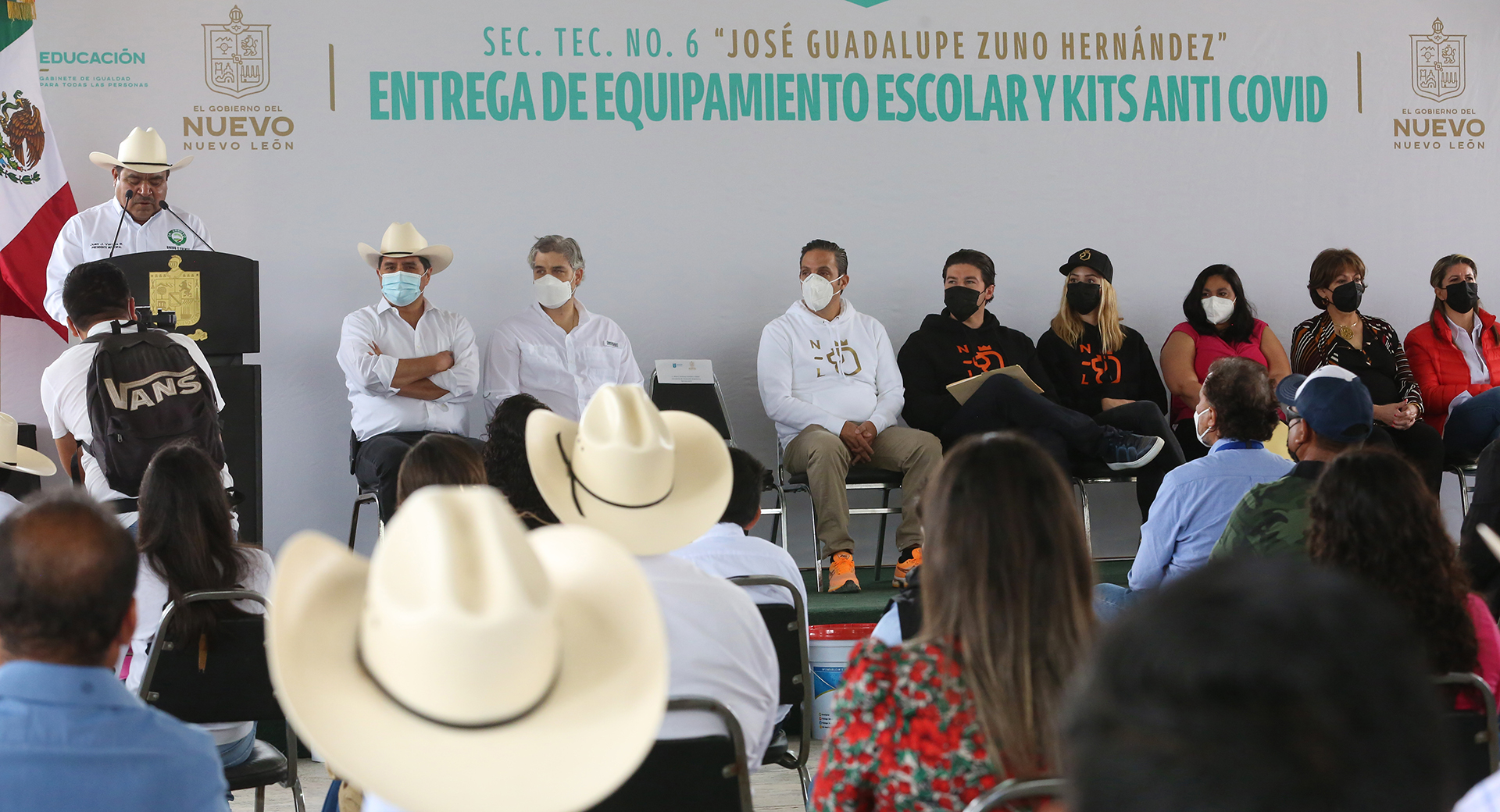 “Venimos hoy con mucho gusto a dejar algo de material, minisplits, bancos, pero lo importante es lo que nos llevamos...si pudimos llevar 56 mil neoleoneses a vacunarse a Texas ¿ustedes creen que no podamos traer a 150 alumnos aquí a la escuela?”, indico el mandatario estatal.