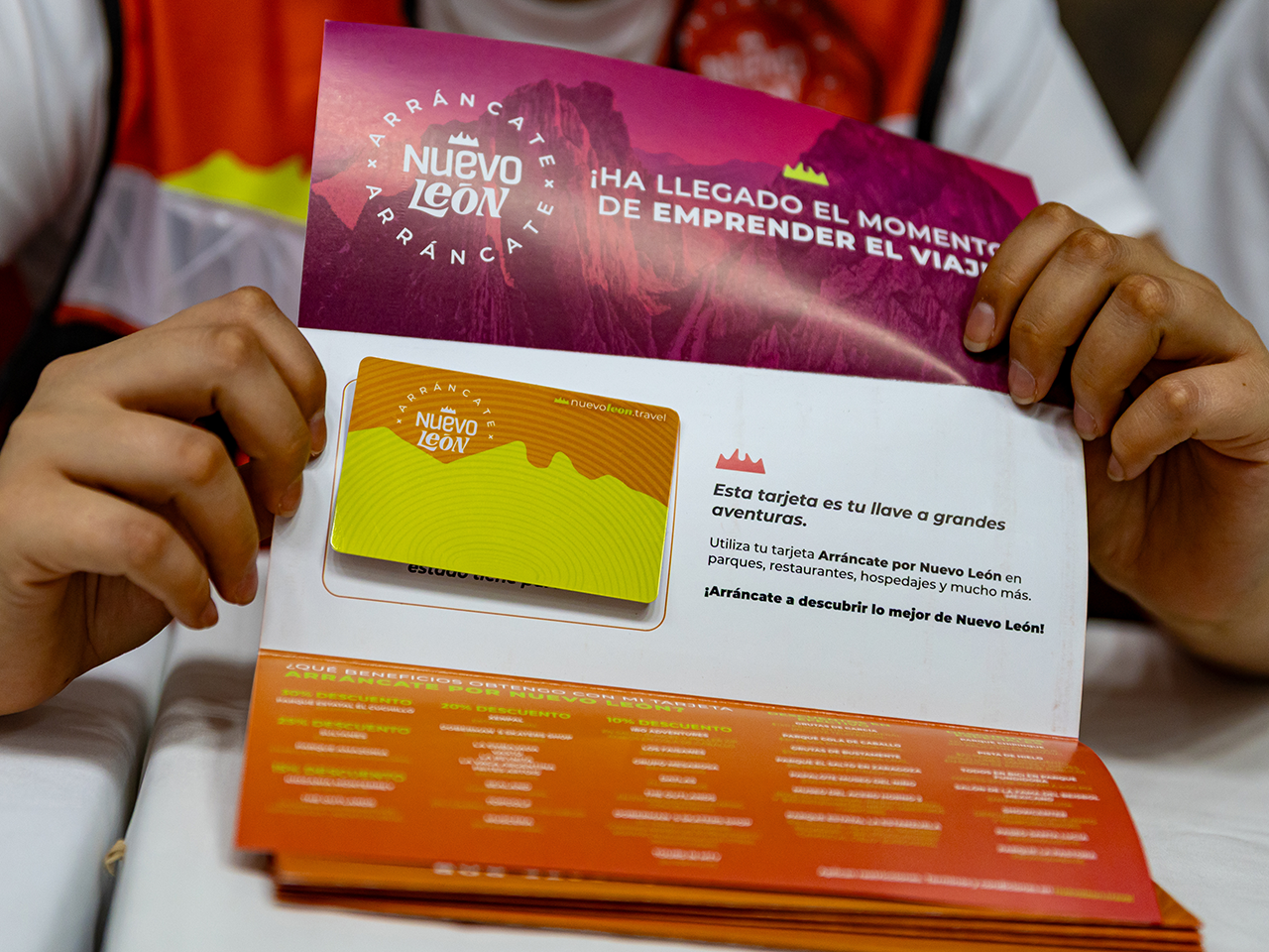 Juárez, Nuevo León.- Para brindarle beneficios a los neoloneses durante estas vacaciones de Semana Santa, el Gobernador de Nuevo León Samuel Alejandro García Sepúlveda inició en el municipio de Juárez la entrega de tarjetas del programa "Arráncate x Nuevo León", que otorgará descuentos en diferentes lugares turísticos del Estado.