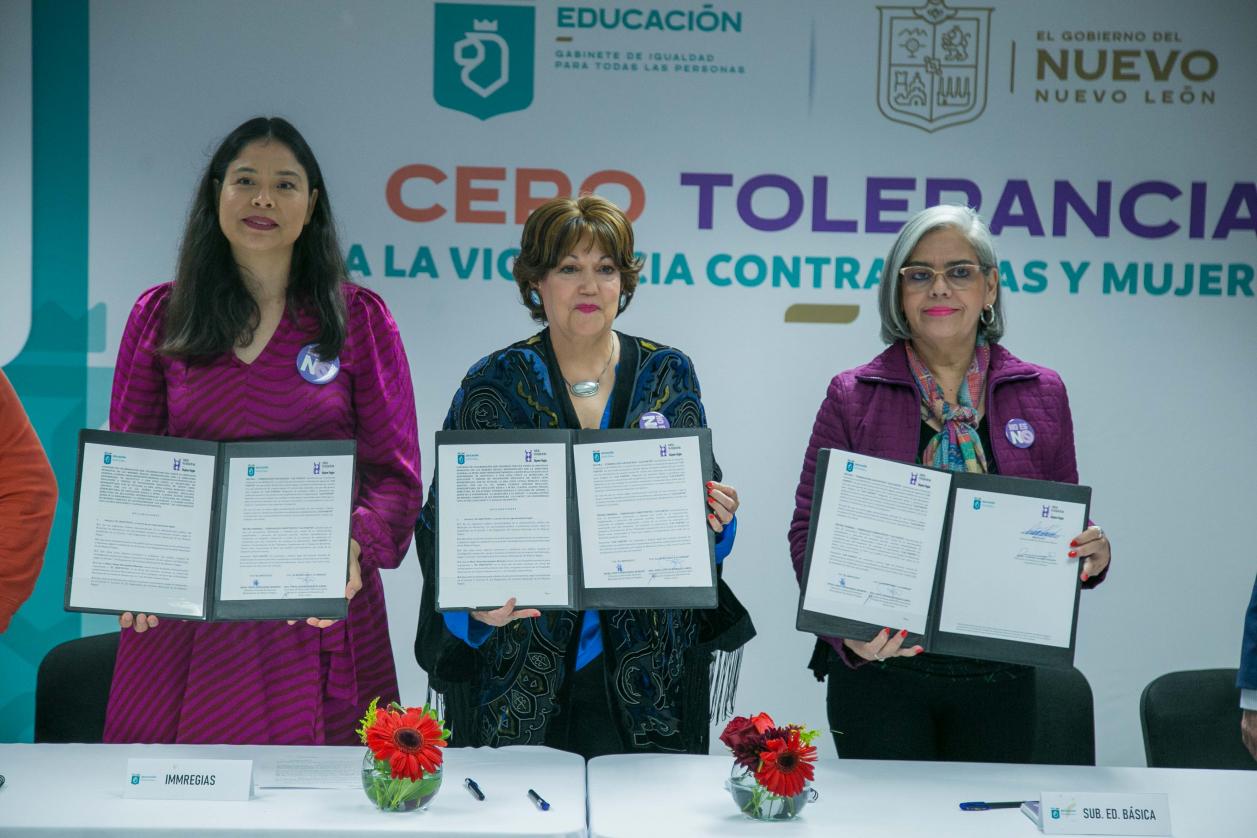 La firma de convenio estuvo a cargo de Morales Garza y Deisy Hernández Moreno, titular del Instituto de las Mujeres Regias, quién dijo que a través de la educación se apuesta por un cambio sociocultural en las niñas, niños y adolescentes.