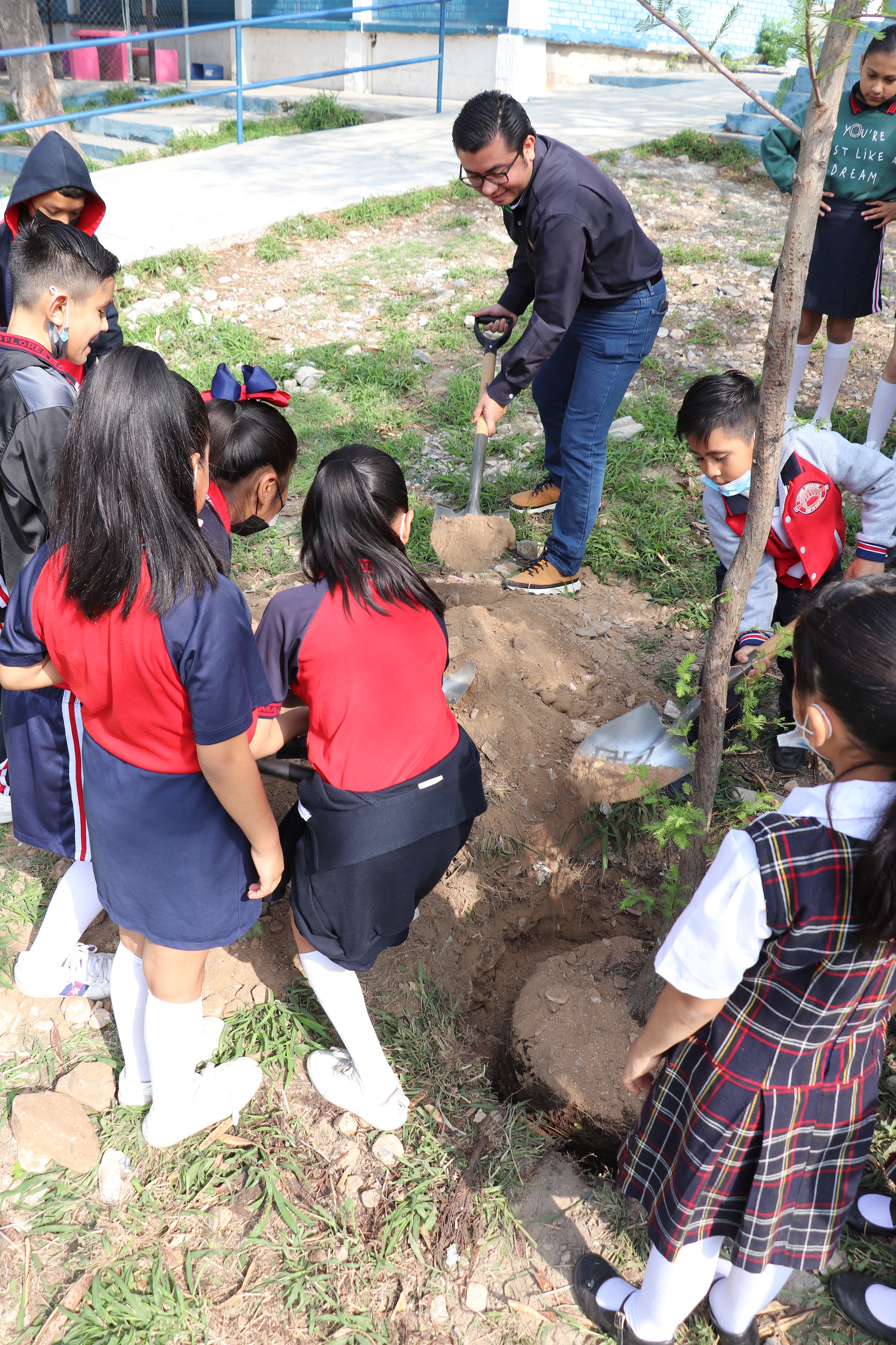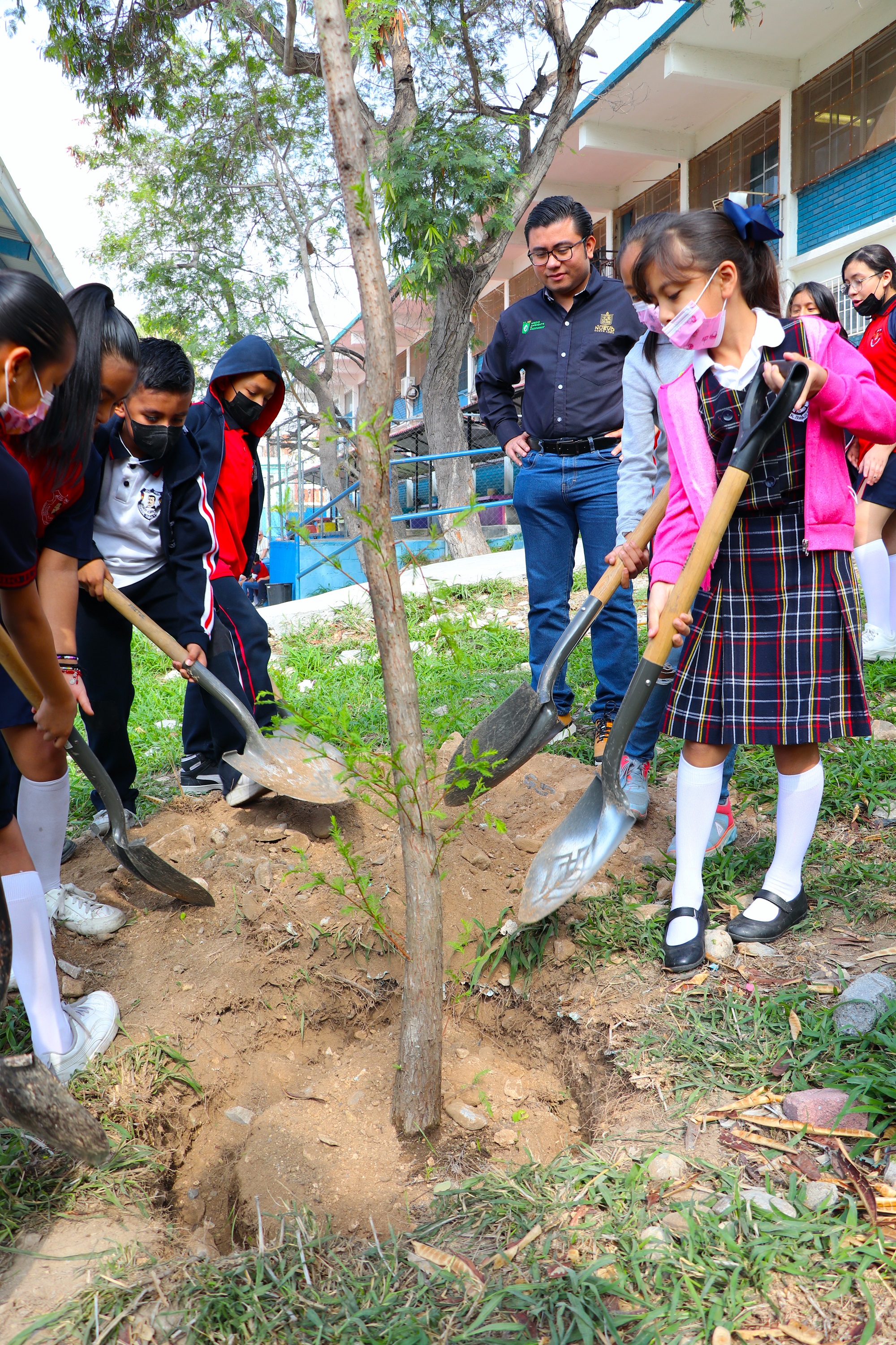 Fue acompañado de colaboradores y colaboradoras de la dependencia, maestros, maestras y personal administrativo del plantel, así como niñas y niños que, emocionados, instalaron 25 árboles endémicos de la región, los cuáles se comprometieron a regar y cuidar para que crezcan fuertes y sean así, un legado para las generaciones que estudien es su escuela.