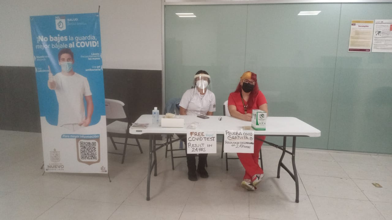 La Secretaría de Salud instaló módulos de pruebas Covid en el Aeropuerto Internacional de Monterrey, para monitorear la movilidad del virus en viajeros durante esta temporada vacacional de Semana Santa.