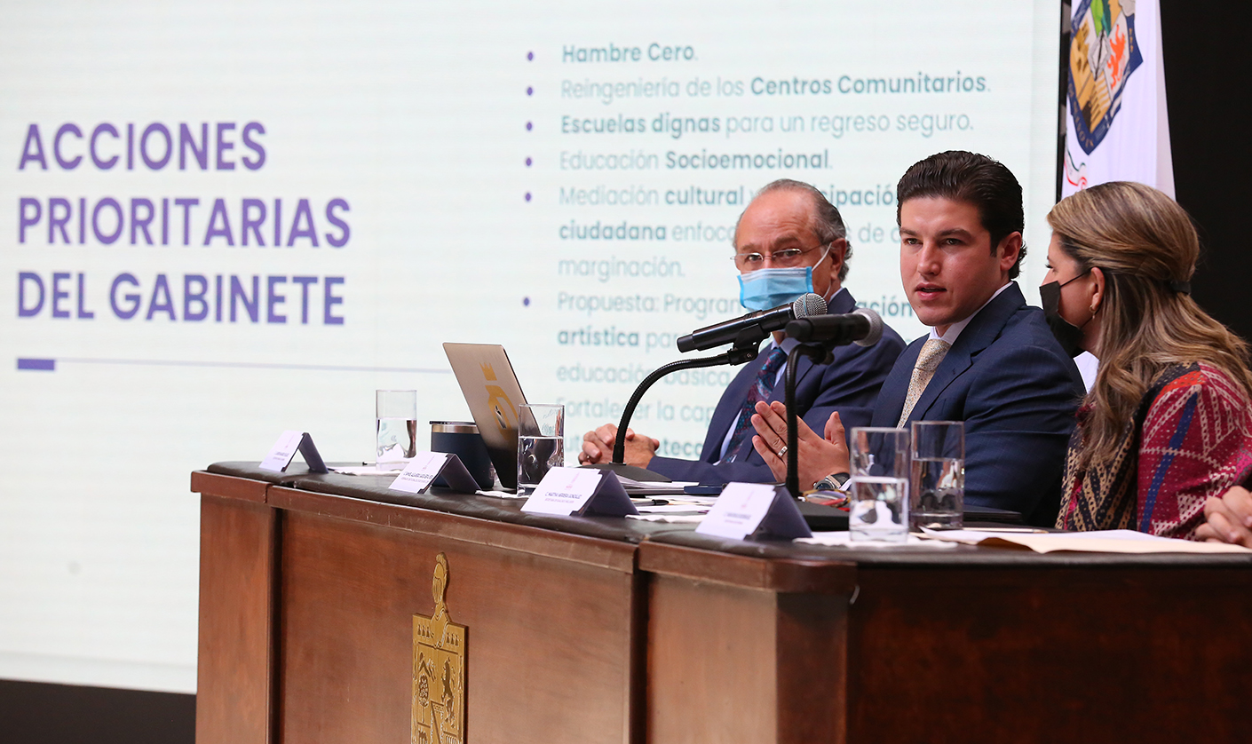 El Gobernador del Estado, Samuel Alejandro García Sepúlveda presentó los tres Gabinetes que coordinarán las acciones prioritarias de su administración y anunció cuáles serán las encomiendas principales de cada uno de ellos.