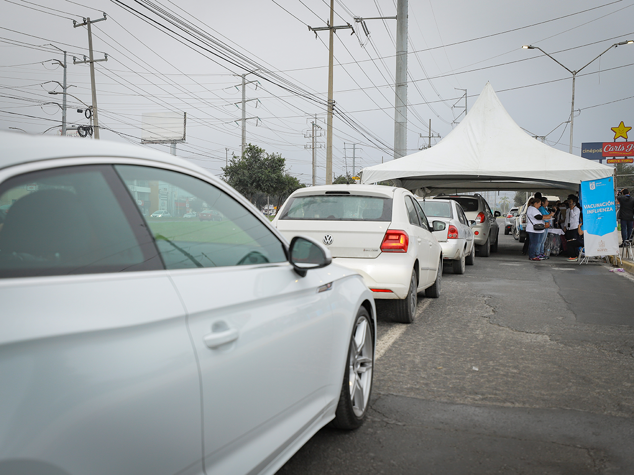 Escobedo, Nuevo León.- La Secretaría de Salud continúa reforzando la campaña de vacunación contra Influenza, COVID-19 y Neumococo, hoy con la instalación de un módulo Drive-Thru en la avenida Sendero del municipio de Escobedo.