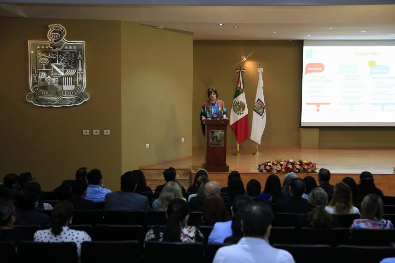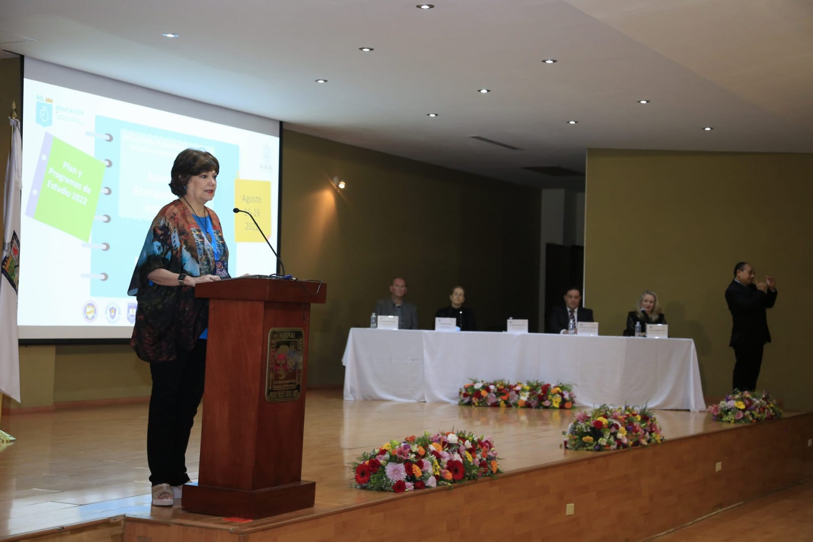 En su mensaje, la Secretaria de Educación, Sofialeticia Morales Garza, resaltó que por primera vez la formación docente del país cuenta con una malla curricular que responde a las necesidades y formación docente en el Estado.