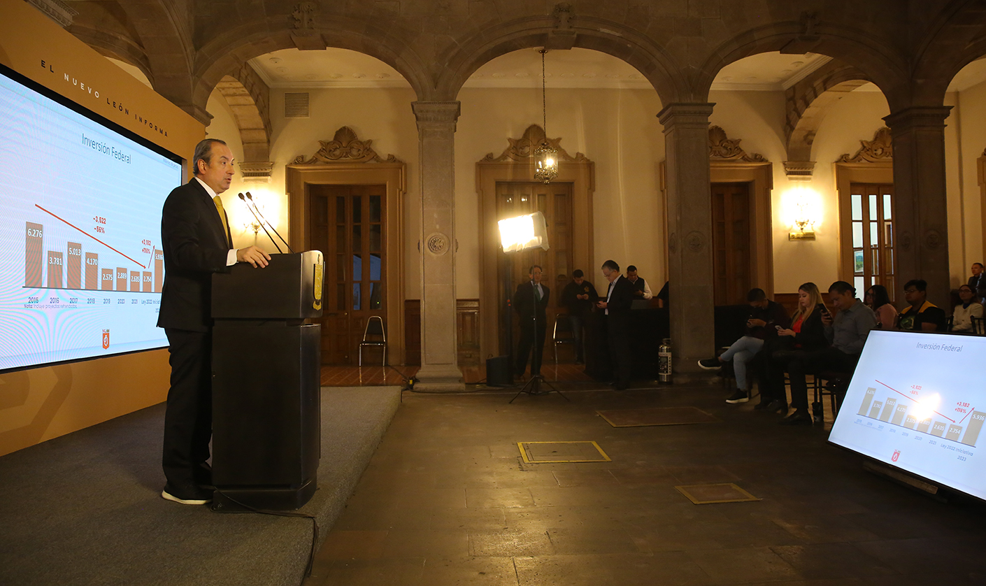 El Proyecto de Presupuesto de Egresos para 2023 considera una inversión total de 24 mil 549 millones de pesos, 56 por ciento más que el año pasado, anunció el Secretario de Finanzas y Tesorero General del Estado, Carlos Garza Ibarra. Las prioridades para este año son seguridad, educación, salud y movilidad.