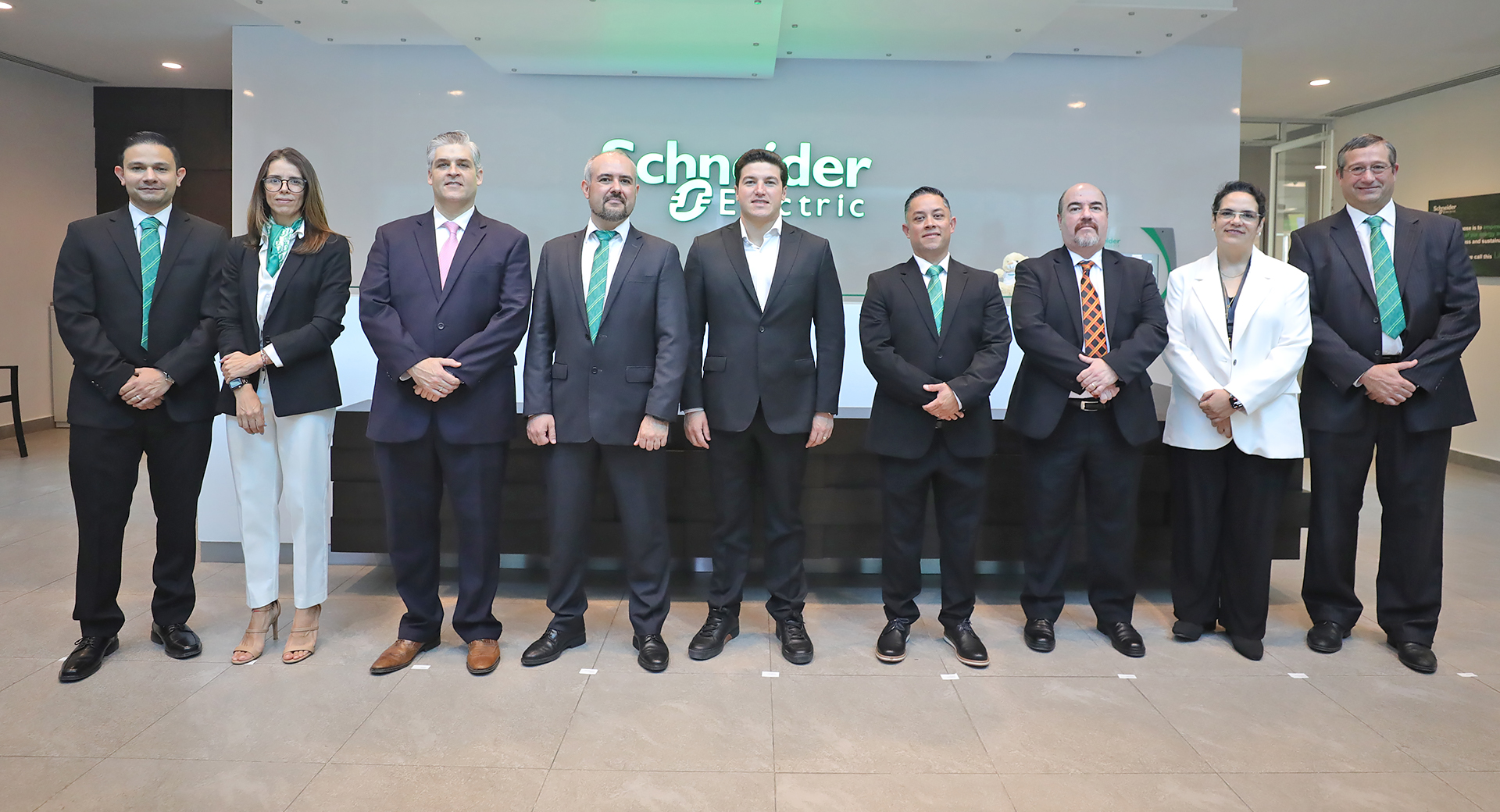 Apodaca, Nuevo León.- Ante el Gobernador Samuel Alejandro García Sepúlveda, directivos de la empresa Schneider Electric anunciaron una inversión de 40 millones de dólares en Nuevo León para expandir su Centro de Desarrollo & Innovación.