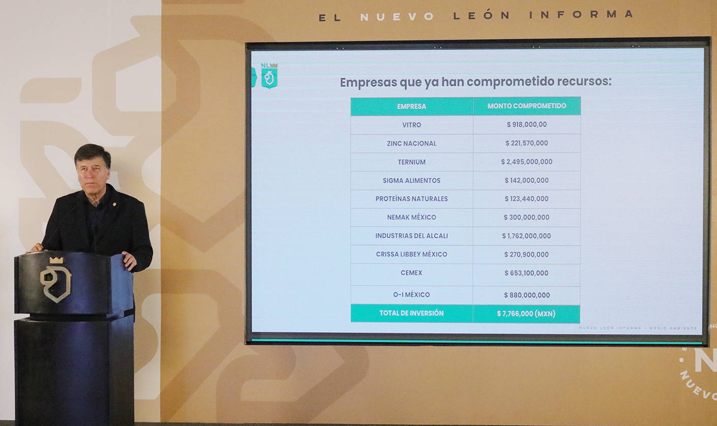 Monterrey, Nuevo León.- El Gobierno de Nuevo León, a través de la Secretaría de Ambiente, reveló hoy la lista de 10 empresas que han entrado en una fase de inversiones con el propósito de innovar en sus procesos y así reducir sus emisiones a la atmósfera.