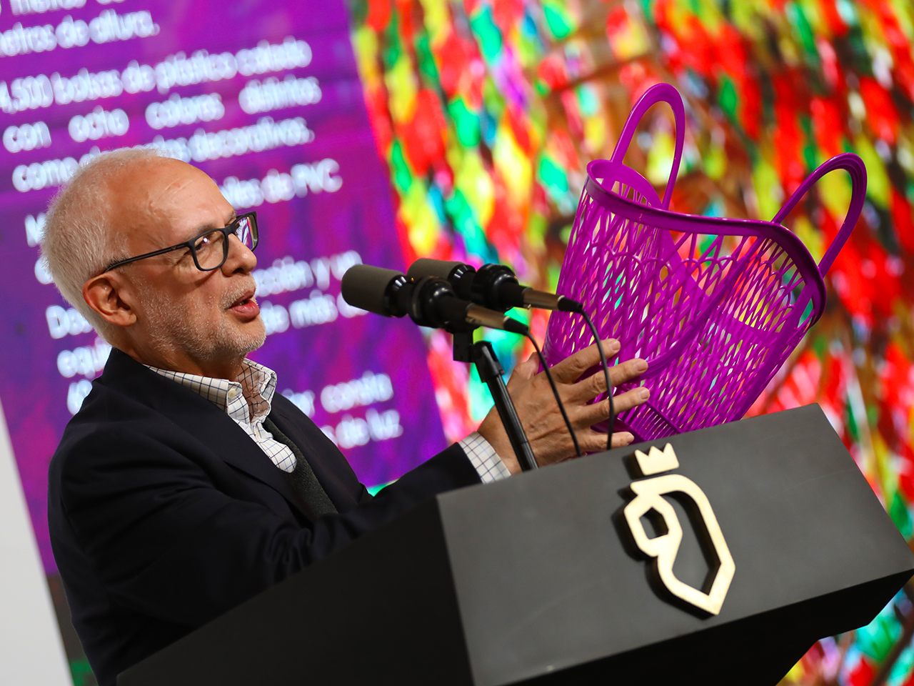El director del Museo explicó que la creación del pino en donde trabajaron más de 60 personas, estuvo a cargo del artista Sergio Rodríguez y consta de 4 mil 500 canastas de plástico de diferentes colores; 2 mil móviles de PVC como espejos, además de luces. Asimismo tiene 10 metros de diámetro y 23 metros de altura.