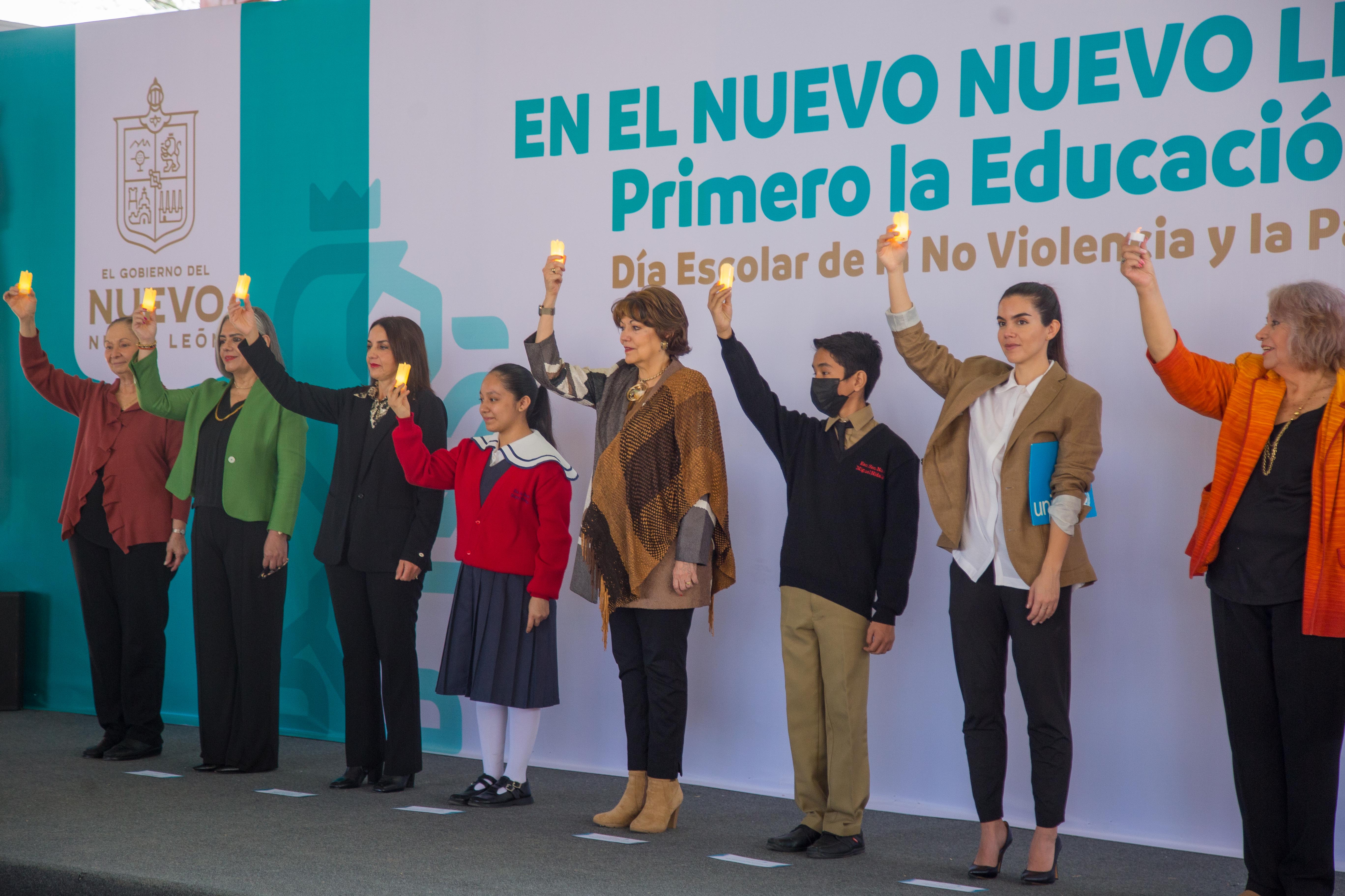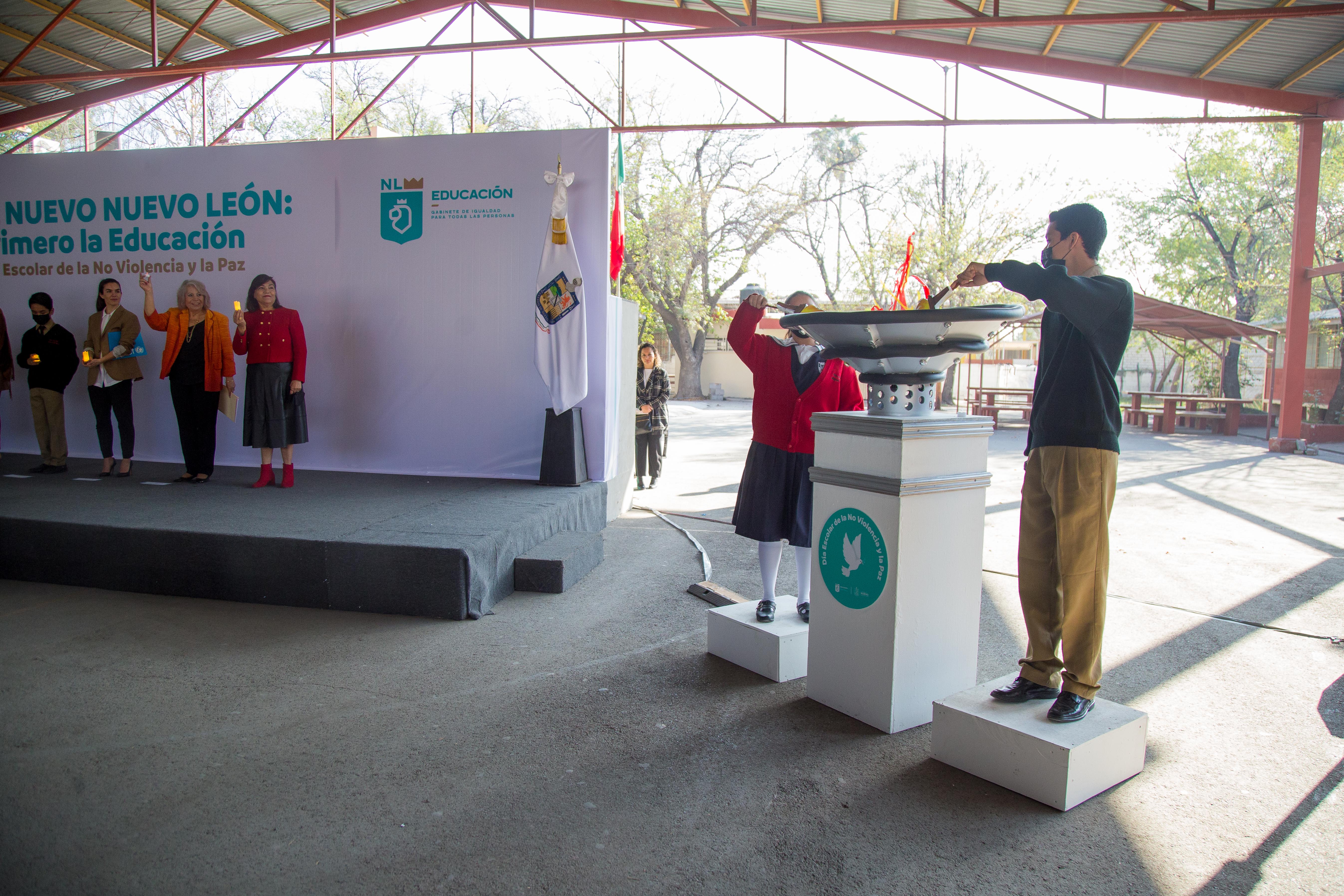 En el marco del “Día Escolar de la No Violencia y la Paz”, autoridades de Nuevo León exhortaron a alumnos, padres de familia, docentes y sociedad civil a hacer un frente común para prevenir y evitar la violencia en los planteles.