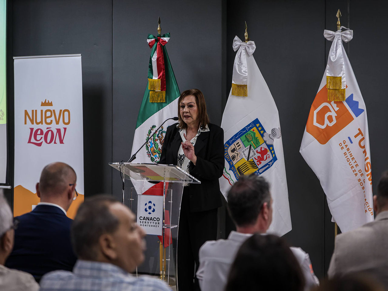 Durante el evento realizado en CANACO Monterrey, la secretaria de Turismo, Maricarmen Martínez Villarreal destacó que la profesionalización del sector es una pieza clave para el crecimiento sostenido del turismo en Nuevo León.